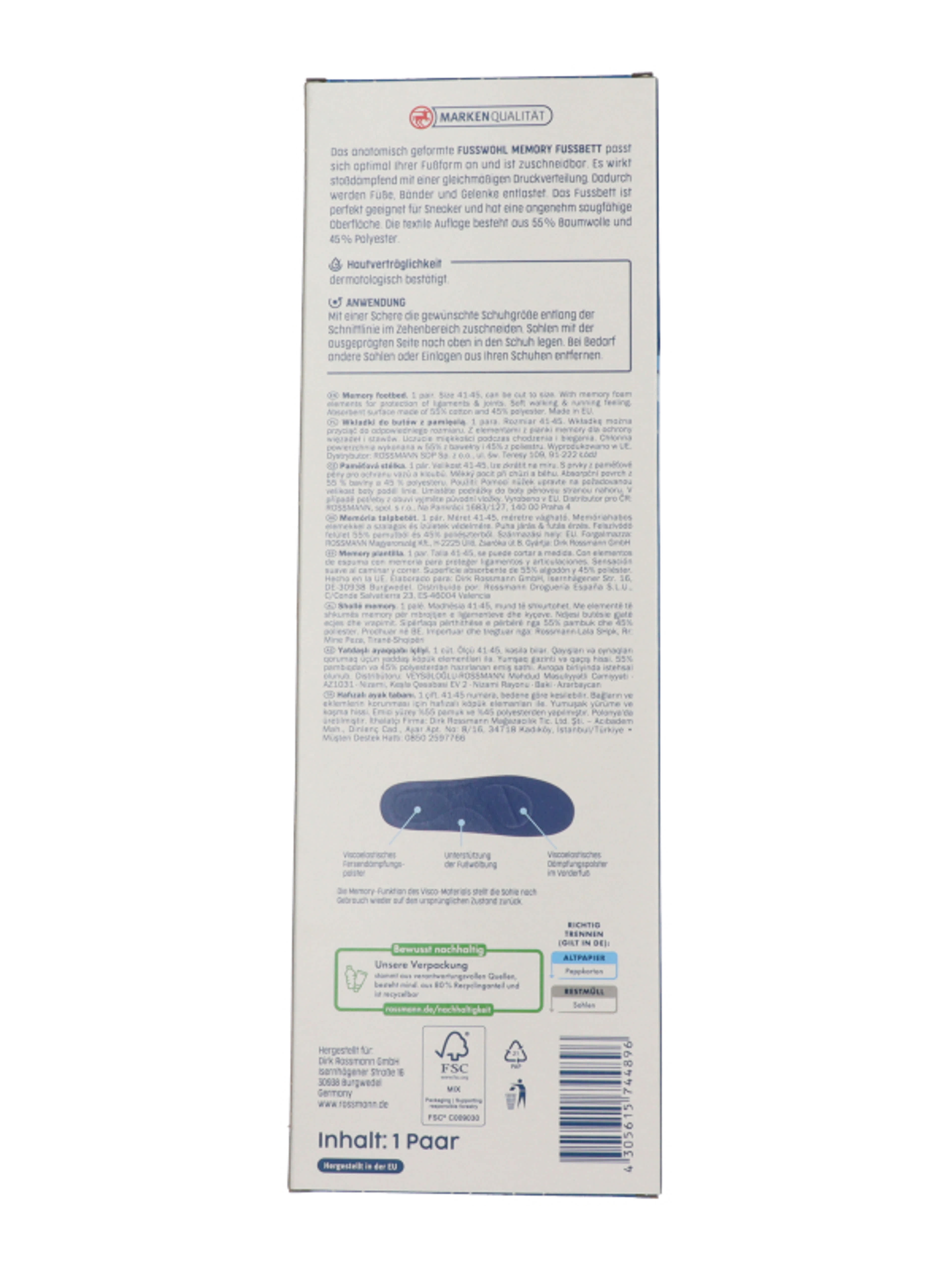 Fuss Wohl Memory talpbetét 41-45, 1 pár - 1 db