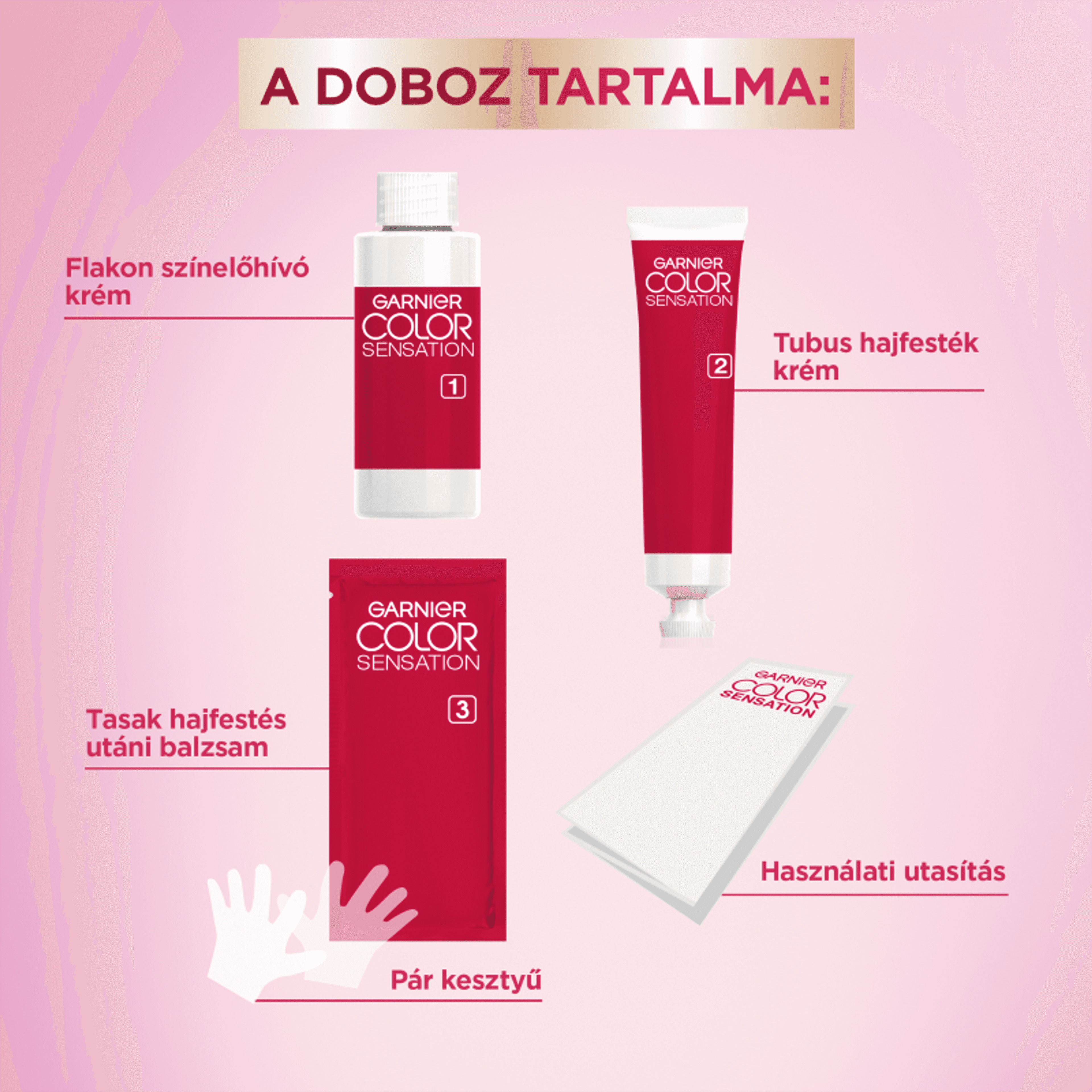 Garnier Color Sensation tartós hajfesték. Az extrém hosszan tartó színpigmenteknek köszönhetően a hajszín gazdag marad akár 10 hétig. Az őszhajszálak akár 100%-os elfedéséért. Új, kifakulást gátló technológia, mely a festékmolekulákat a hajszálak szívébe juttatja a hosszantartó, gazdag színért. A keratinnal gazdagított utóápoló balzsam táplál és lezárja a haj kutikuláit. Gyönyörűen fényessé varázsolja a hajat kasmír tapintással.