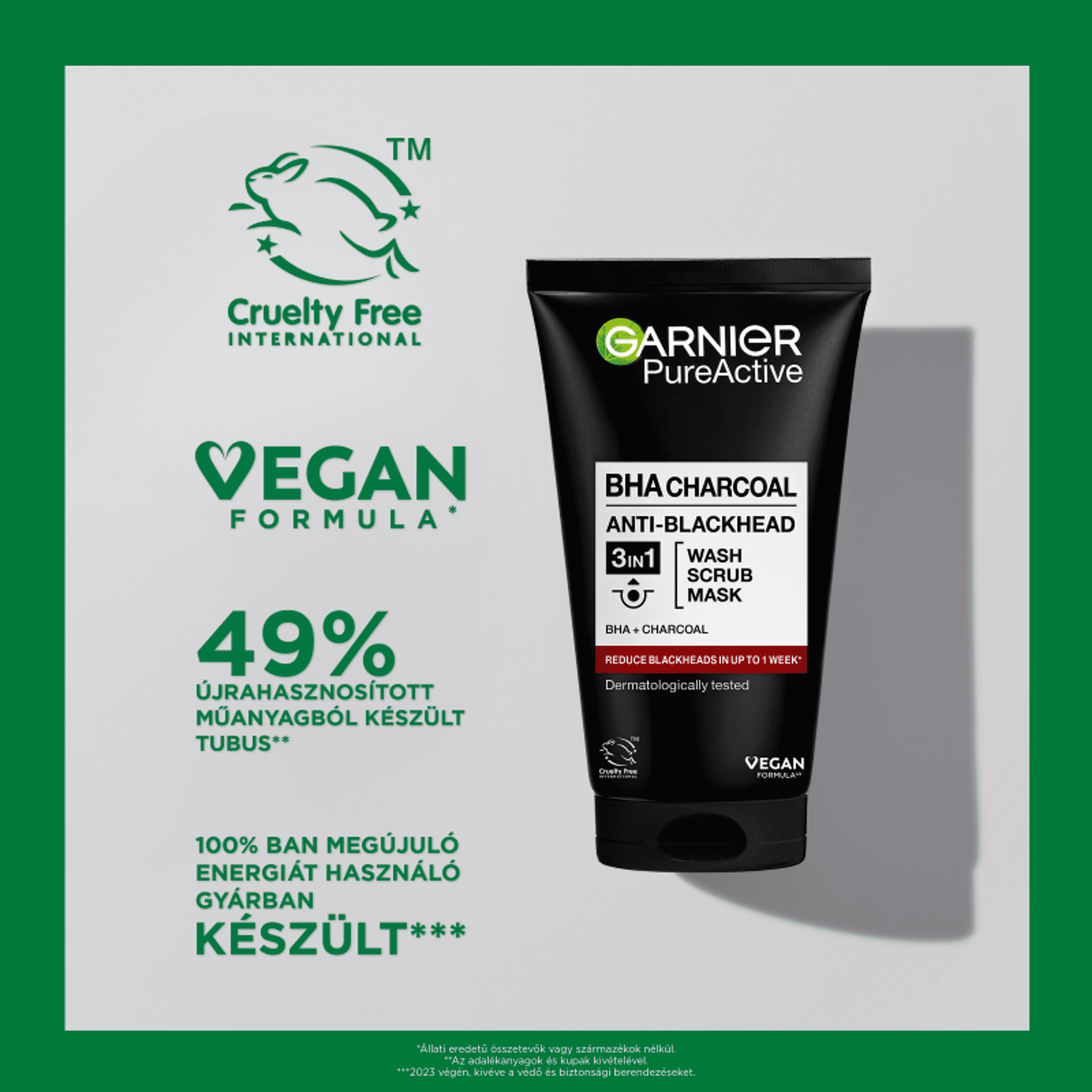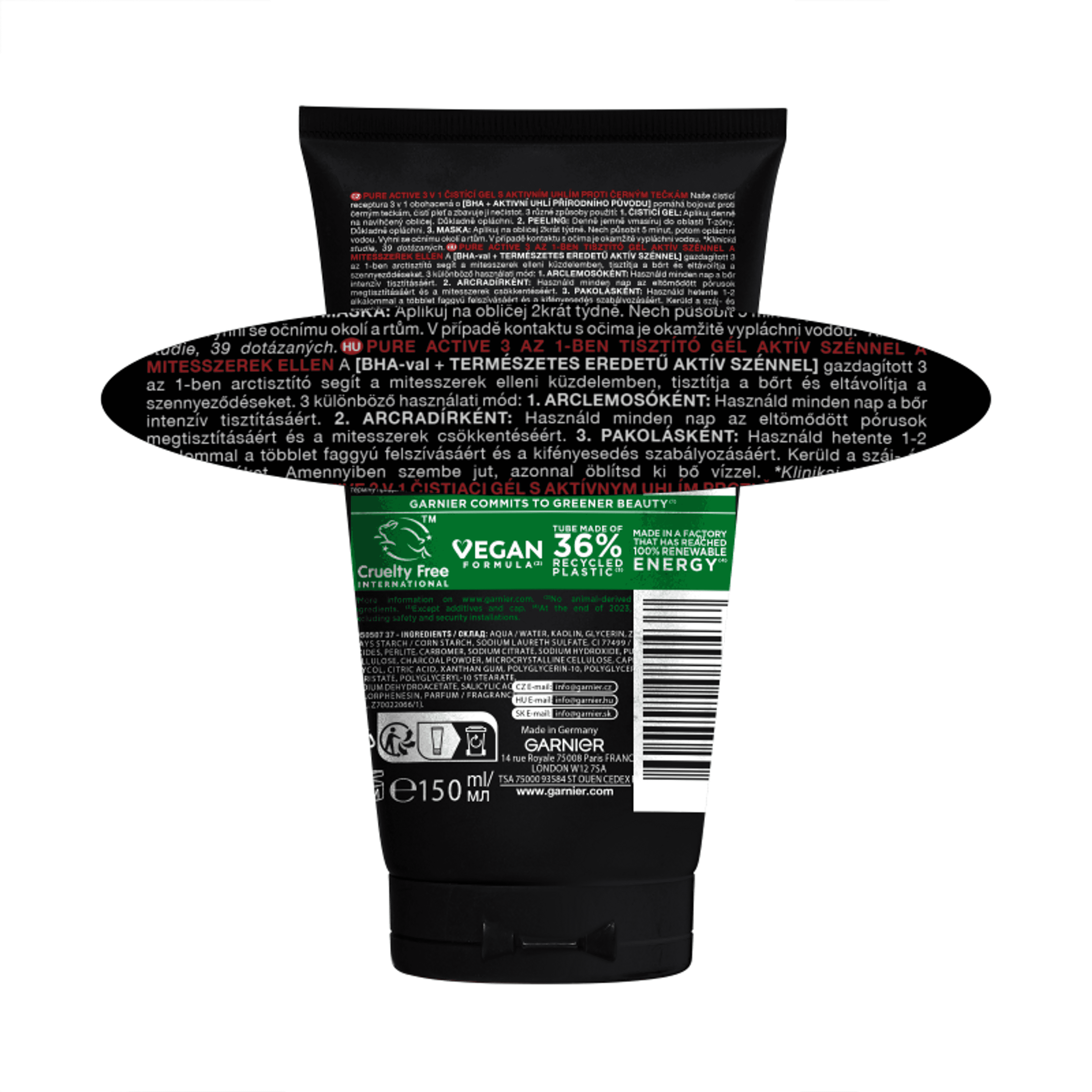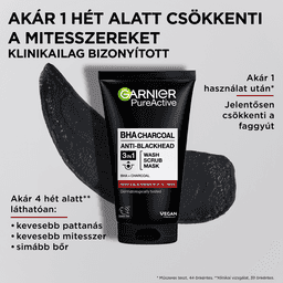 Garnier Skin Naturals Pure Active 3in1 Mitesszerek ellen arcmaszk aktív szénnel - 150 ml