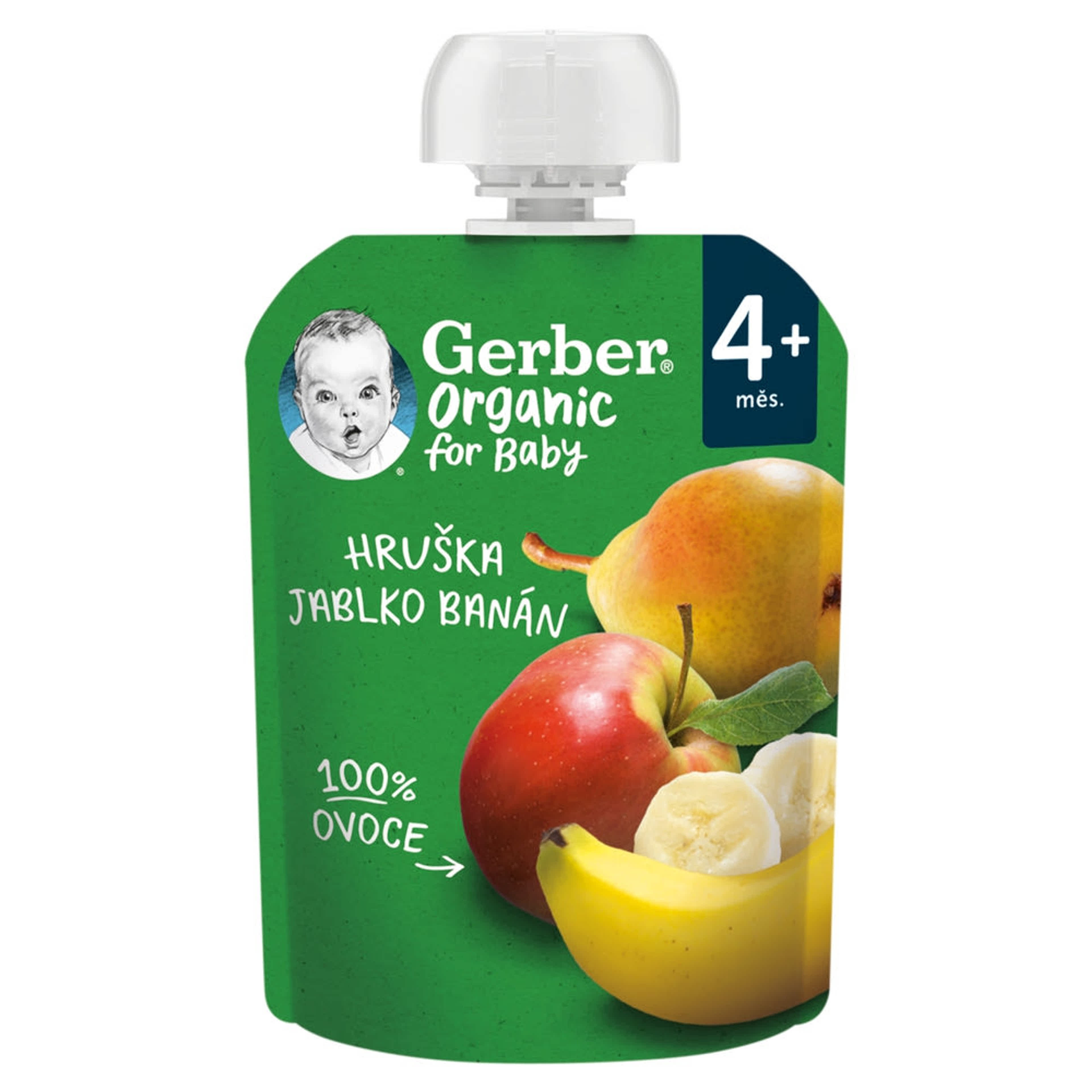 Gerber Organic gyümölcspüré körtével, almával és banánnal 4 hónapos kortól - 90 g