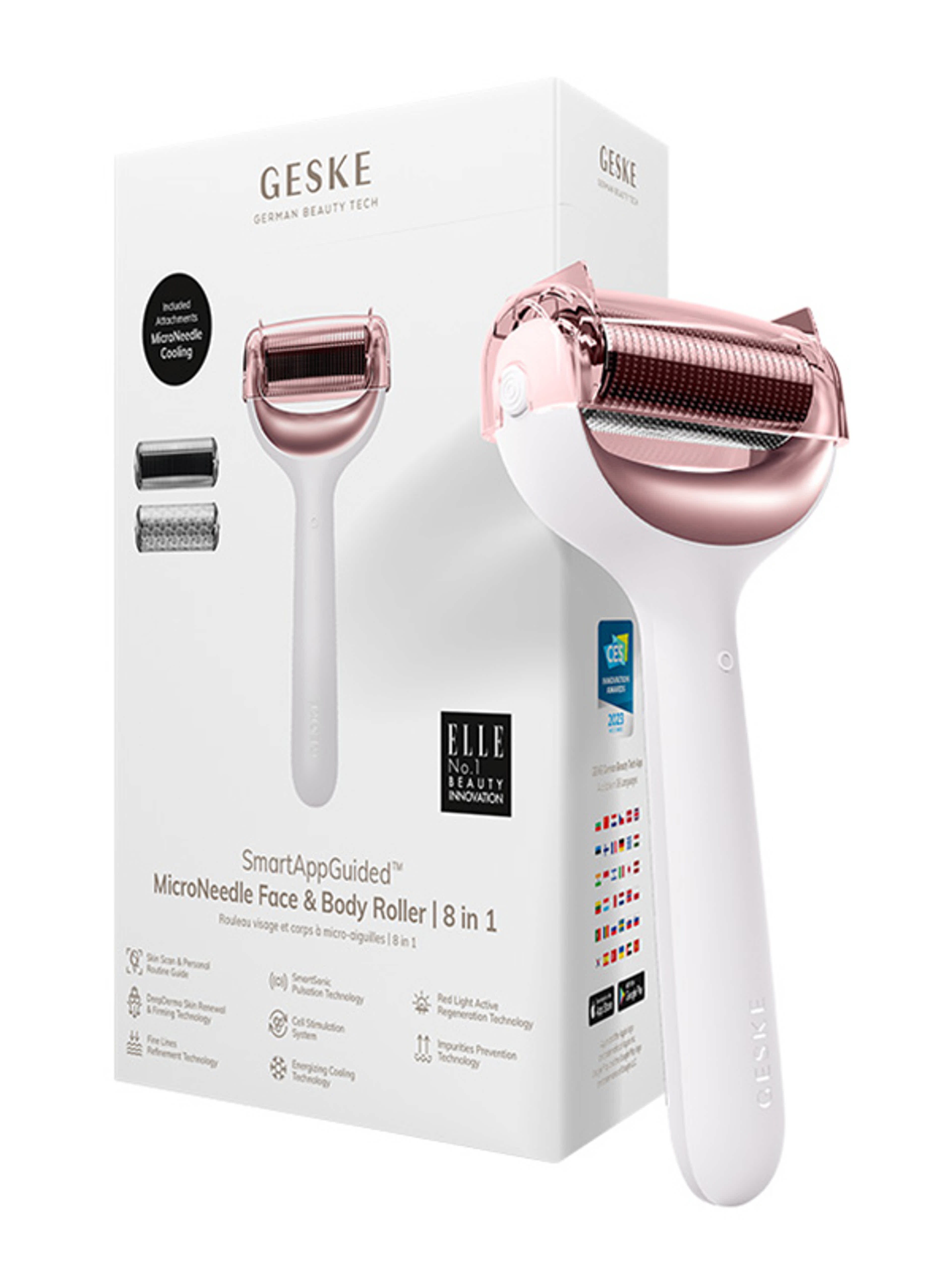 A Geske 8 az 1-ben testhenger számos fejlett technológiát alkalmaz, amelyek segítségével ragyogó, vakító bőrt érhet el. A SmartSonic Pulsation technológia percenként akár 8000 hangimpulzust is küld, gyengéd masszázst biztosítva, miközben eltávolítja a szennyeződéseket. A Red Light Active Regeneration a finom vonalakat célozza meg. A szennyeződések megelőzése hosszan tartó tisztító hatást biztosít, a Fine Lines Refinement minimalizálja az öregedés jeleit, az Energizing Cooling pedig küzd a puffadtság és a fáradtság ellen, miközben finomítja a pórusokat és kisimítja a bőrt. Figyelemre méltó még a DeepDerma Skin Renewal & Firming technológia, amely stimulálja a mélyebb bőrrétegeket.