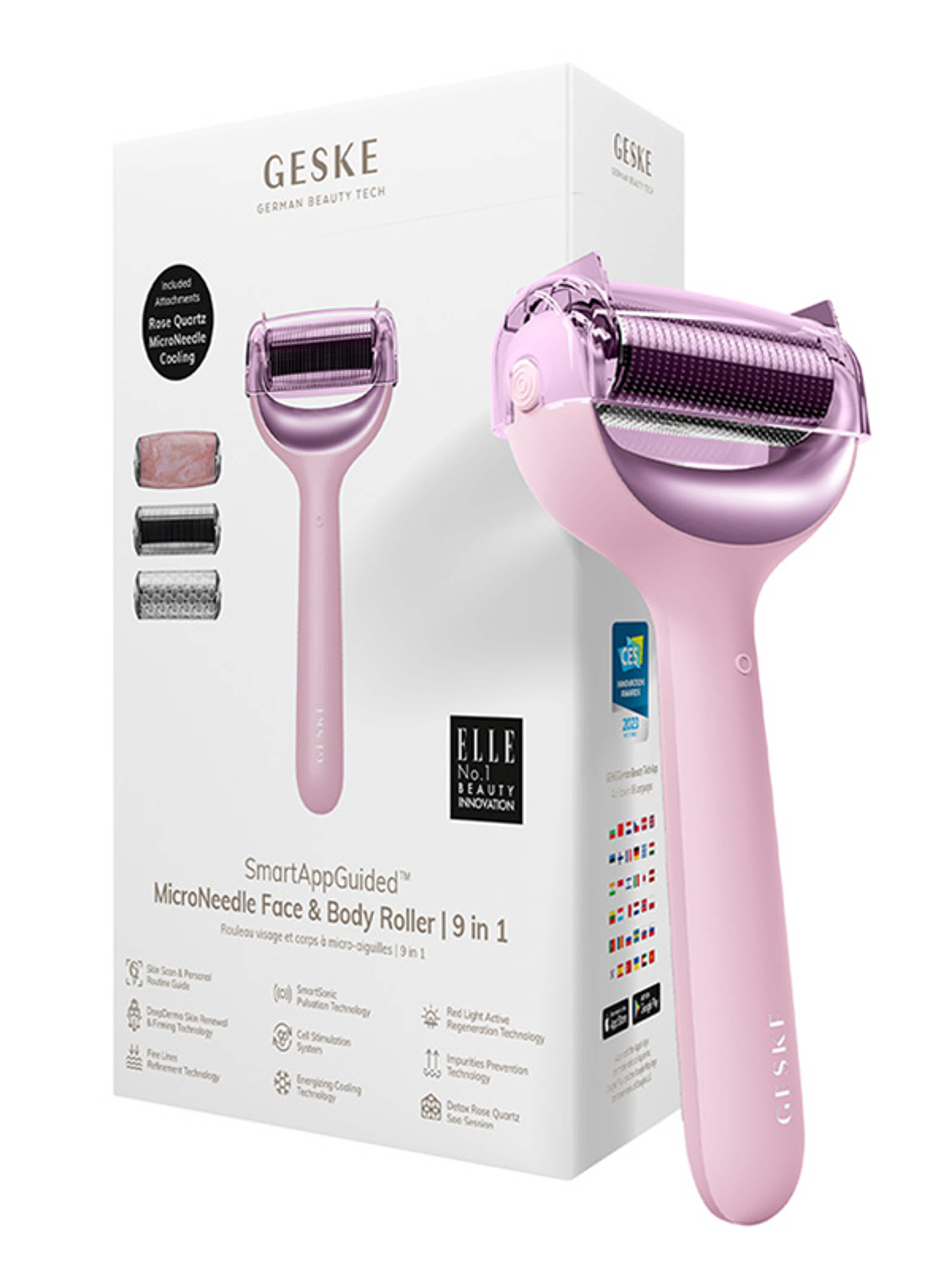 Élvezze a professzionális bőrápolást otthona kényelmében, és felejtse el a drága kezeléseket! Szerezzen felfrissült, egészséges megjelenést a 9 az 1-ben arc és test mikrotűs hengerrel! 3 fejjel, tűvel, hűtővel és kvarccal - felszerelve sokoldalúságával tűnik ki, és minden bőrtípusra alkalmas. A henger egy SmartAppGuided eszköz, amely a GESKE German Beauty Tech alkalmazással működik. Segít abban, hogy gyorsan elérje az álmodott eredményeket – bőre megjelenése alapján az Ön igényeihez szabott bőrápoló kezeléseket javasol, amelyek javítják bőre megjelenését, és minden nap fiatalos ragyogást biztosítanak! A hatékonyságot az ELLE magazin megerősítette!