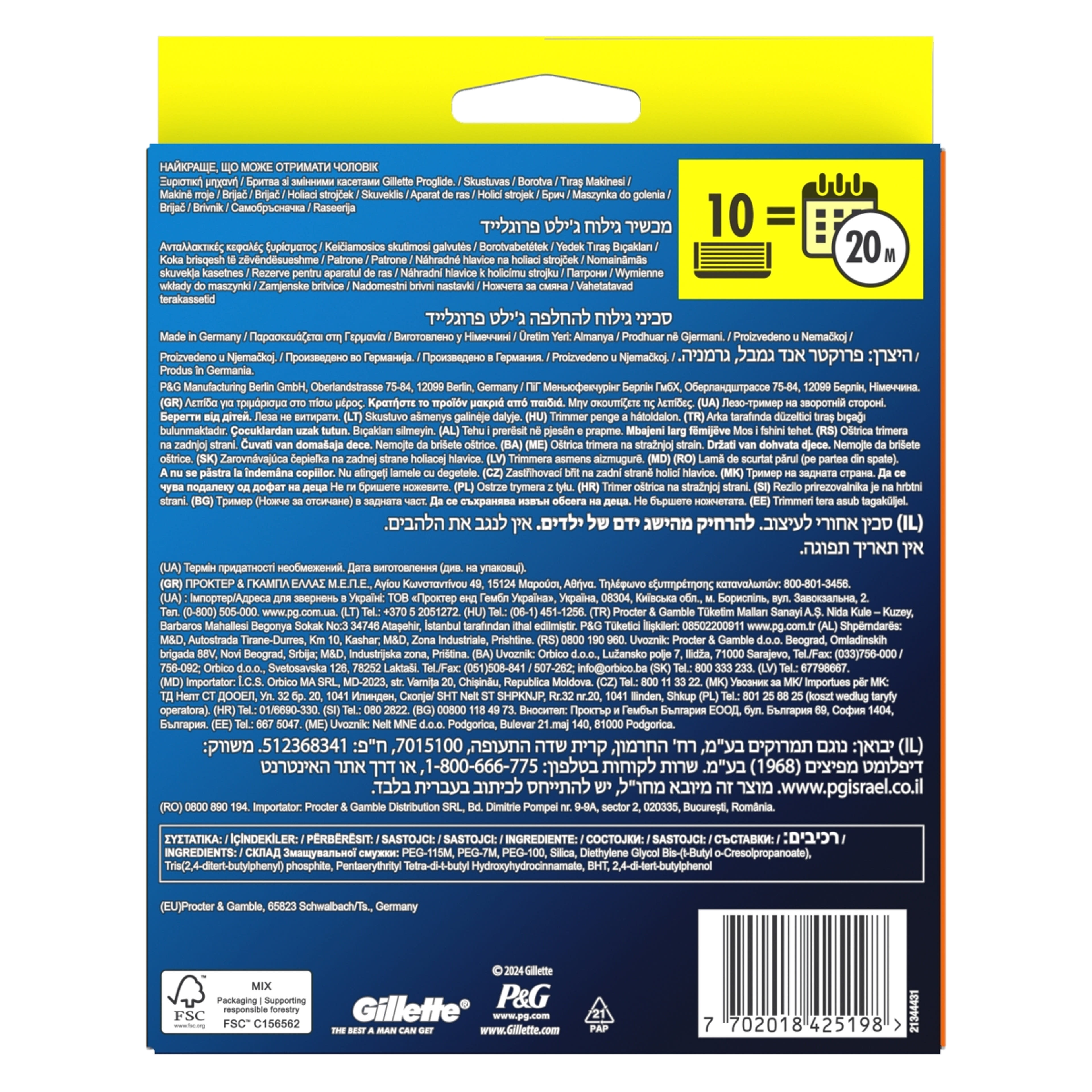 Kompatibilis: Bármely Gillette Fusion, ProGlide és ProShield borotvával használható