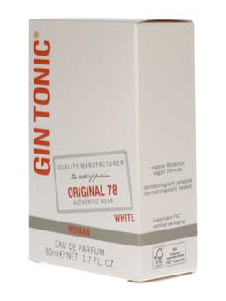A GIN TONIC® Original 78 White elegáns virágos-pézsmás illata a bergamot, fanyar citrom és gyümölcsös feketeribizli élénkítő jegyével nyit, melyet a ozonic akkord egészít ki. A szívillatban extravagáns rózsák, finom muskátlik és egzotikus lótuszok autentikus keveréke bontakozik ki, amely a virágzó nyári kertre emlékeztet. A meglepő, hosszan tartó alapjegy az édeskésen fanyar szantálfa, a meleg pézsma és a púderes tömjén harmonikus összjátéka. Egy illat minden magabiztos nő számára, aki egyedi illatot keres.