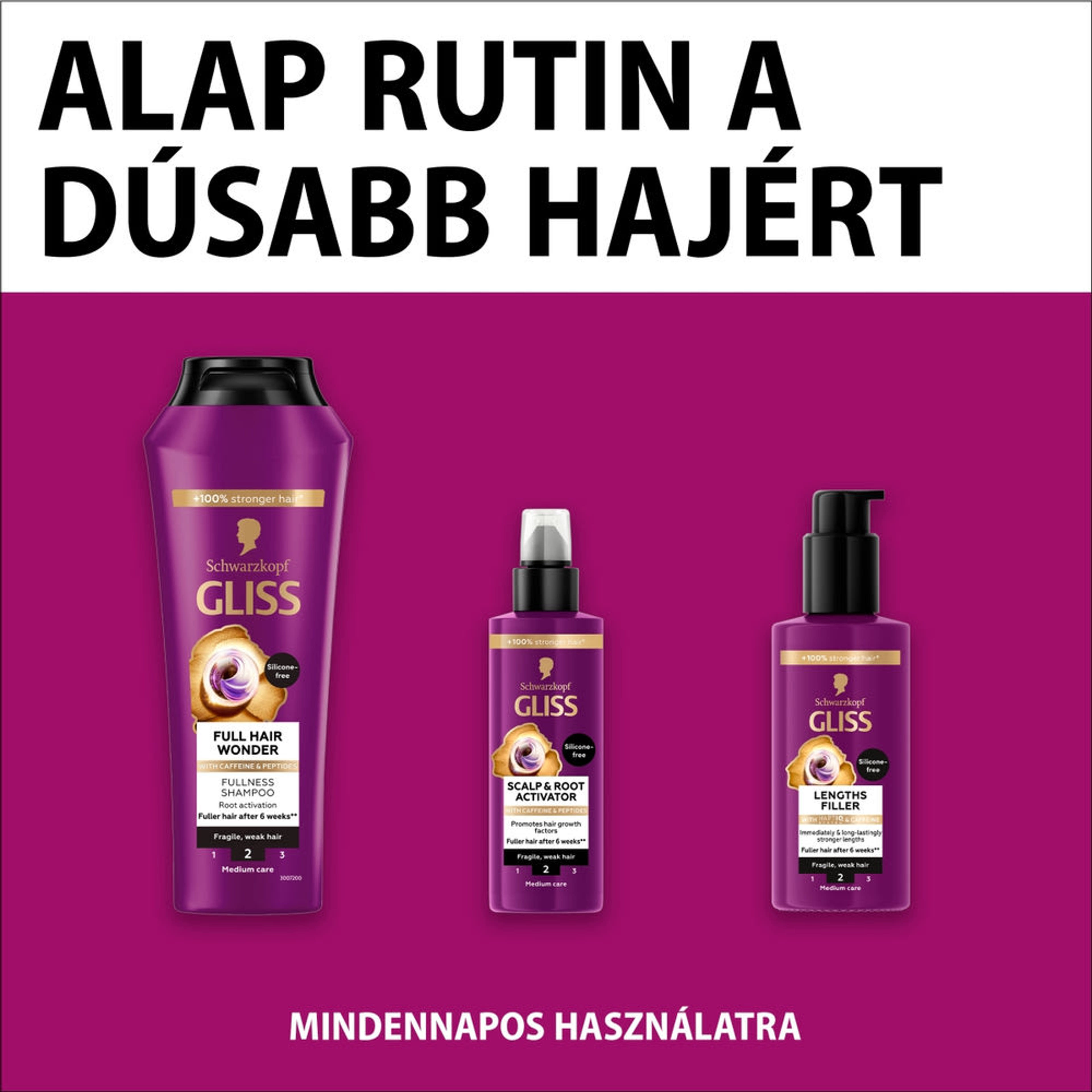 Az új Schwarzkopf GLISS Full Hair Wonder termékcsalád alatt 5 új termék érkezik, teljeskörű hajápolási rutinként. A hajápolók koffeinnel és peptidekkel elengedhetetlen társaid lesznek a dúsabb1 haj eléréséhez ‘For Every You’.