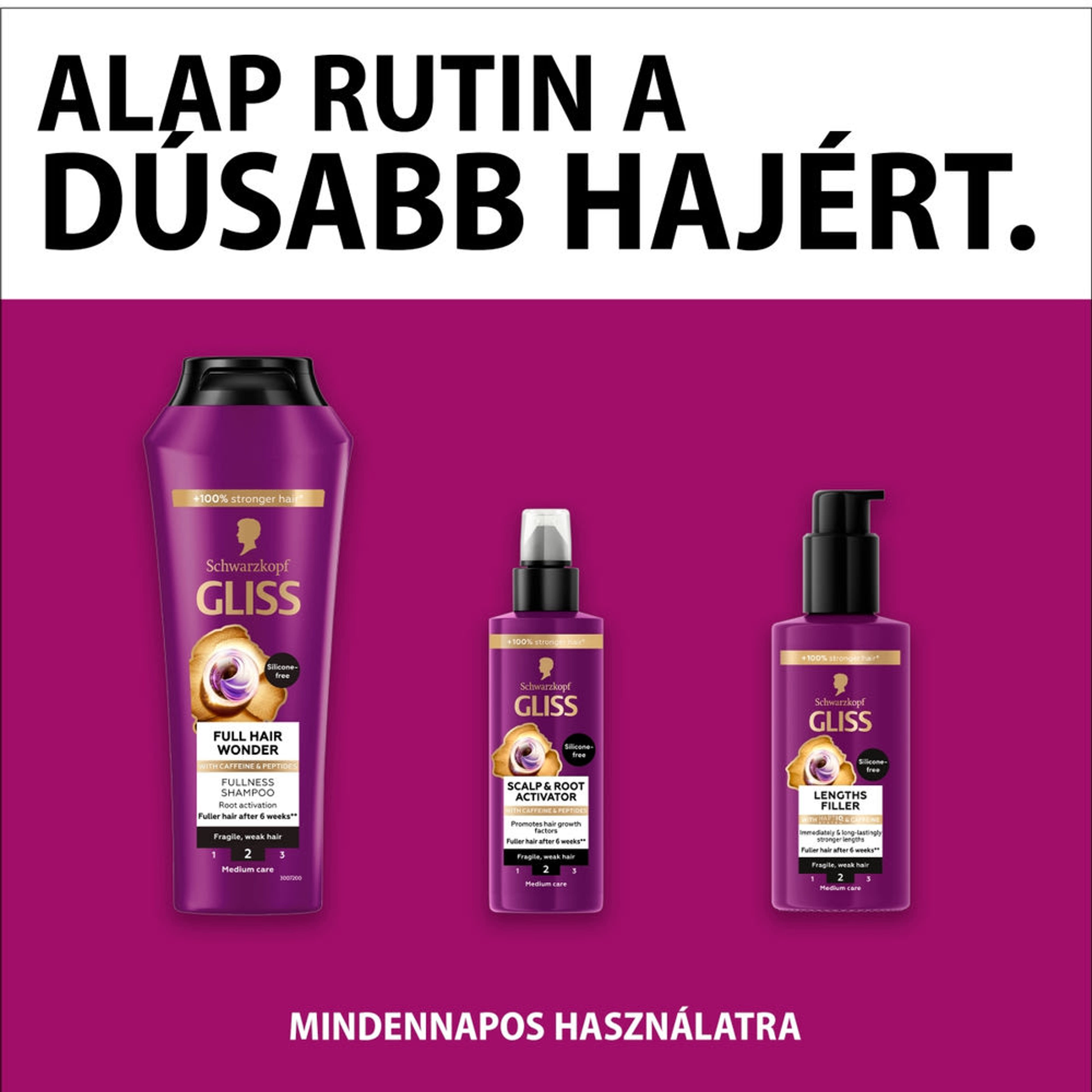 Az új Schwarzkopf GLISS Full Hair Wonder termékcsalád alatt 5 új termék érkezik, teljeskörű hajápolási rutinként. A hajápolók koffeinnel és peptidekkel elengedhetetlen társaid lesznek a dúsabb1 haj eléréséhez ‘For Every You’.