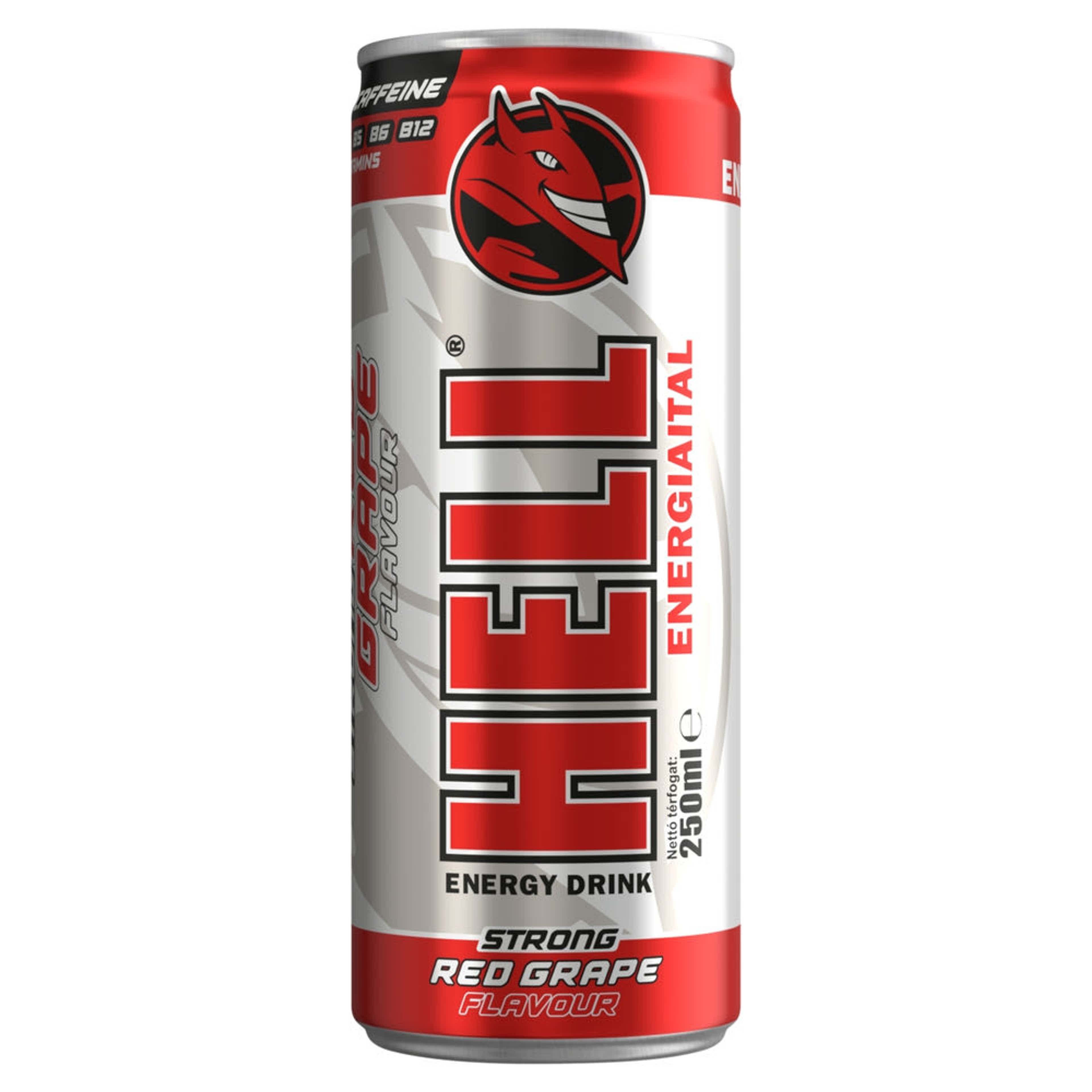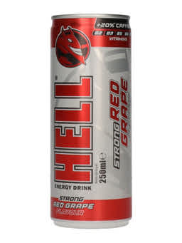 Hell Strong piros szőlő- és tuttifruttiízű koffeintartalmú, szénsavas ital - 250 ml