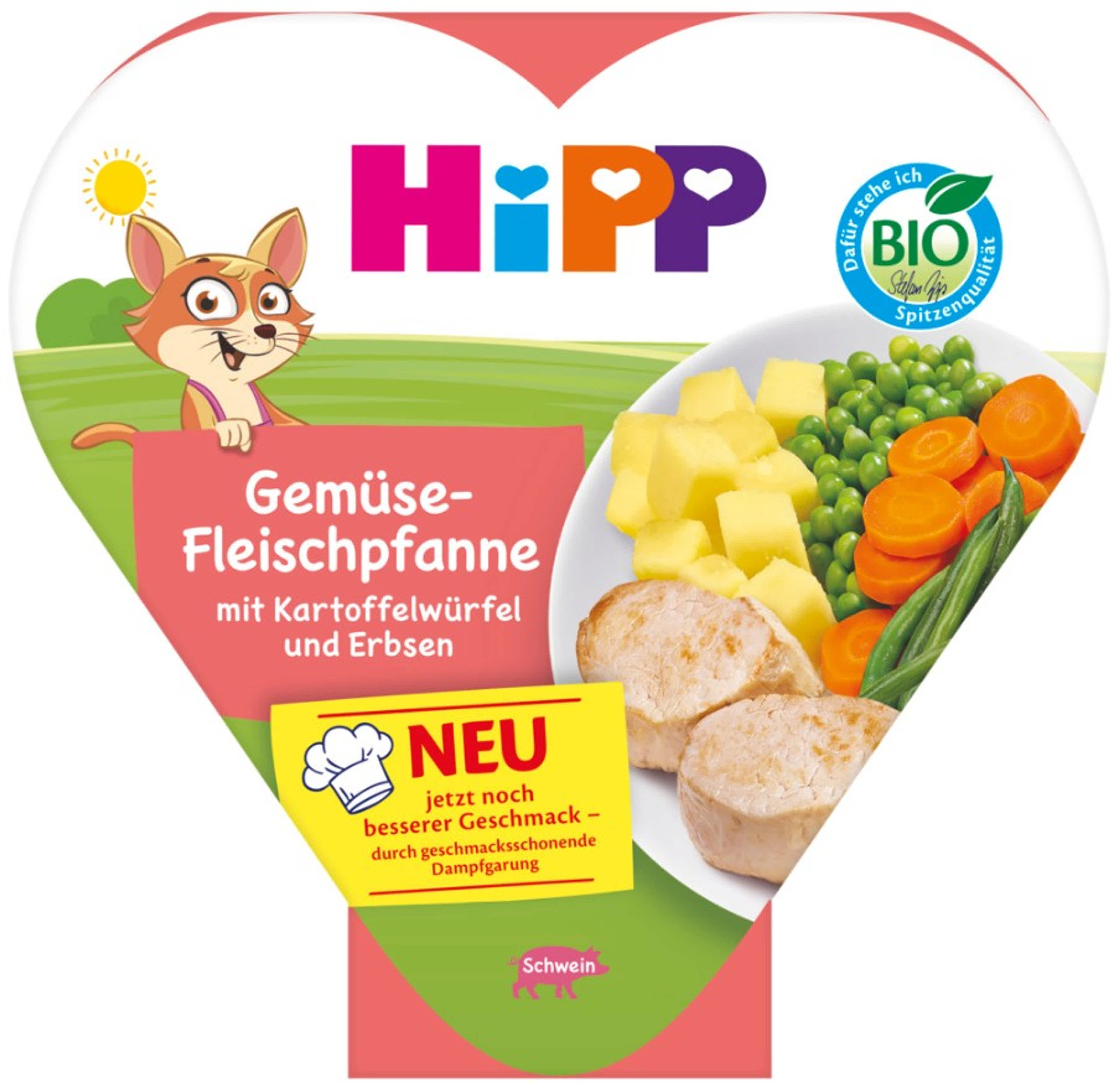Hipp Bio zöldségek sertéshússal és zöldborsóval 1 éves kortól - 250 g