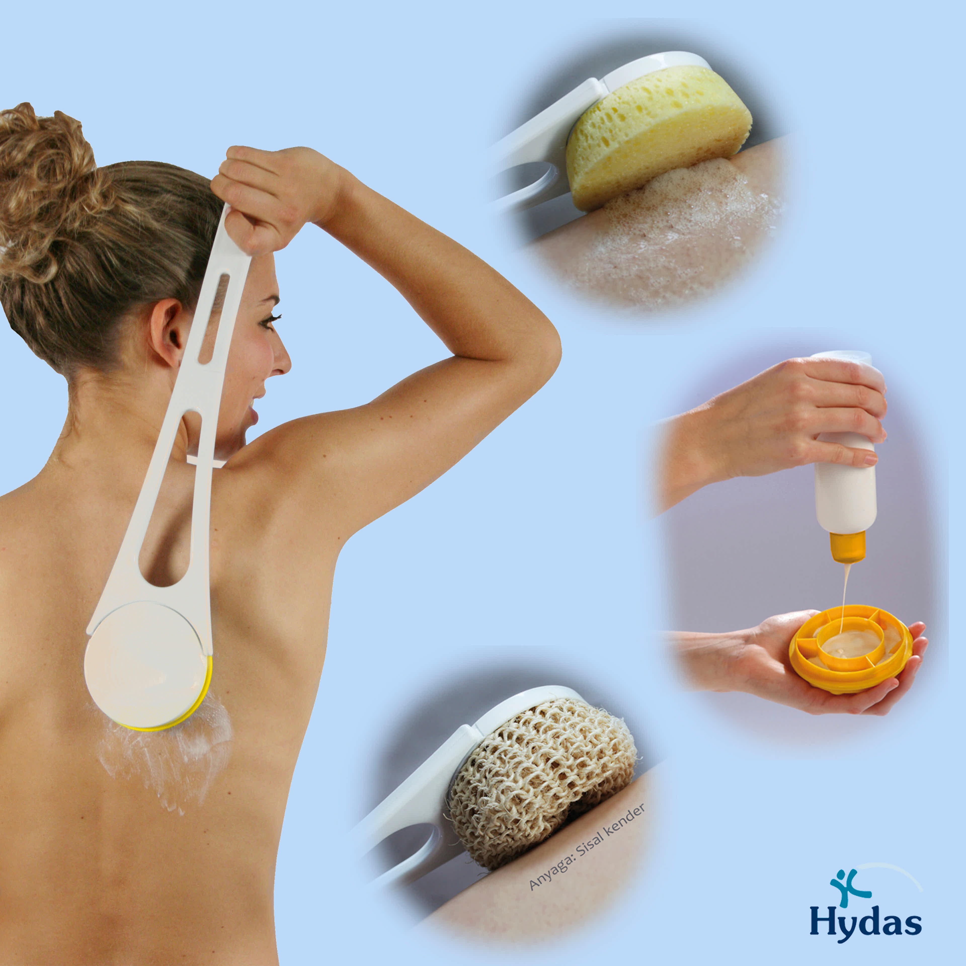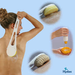 A Hydas karos krémező és luffa segítségével bármilyen tusfürdő, testápoló, naptej vagy akár cellulit krém is egyszerűen, higiénikusan és gazdaságosan felvihető – akkor is, ha nehezen elérhető helyeket szeretne kezelni, például a hátát.