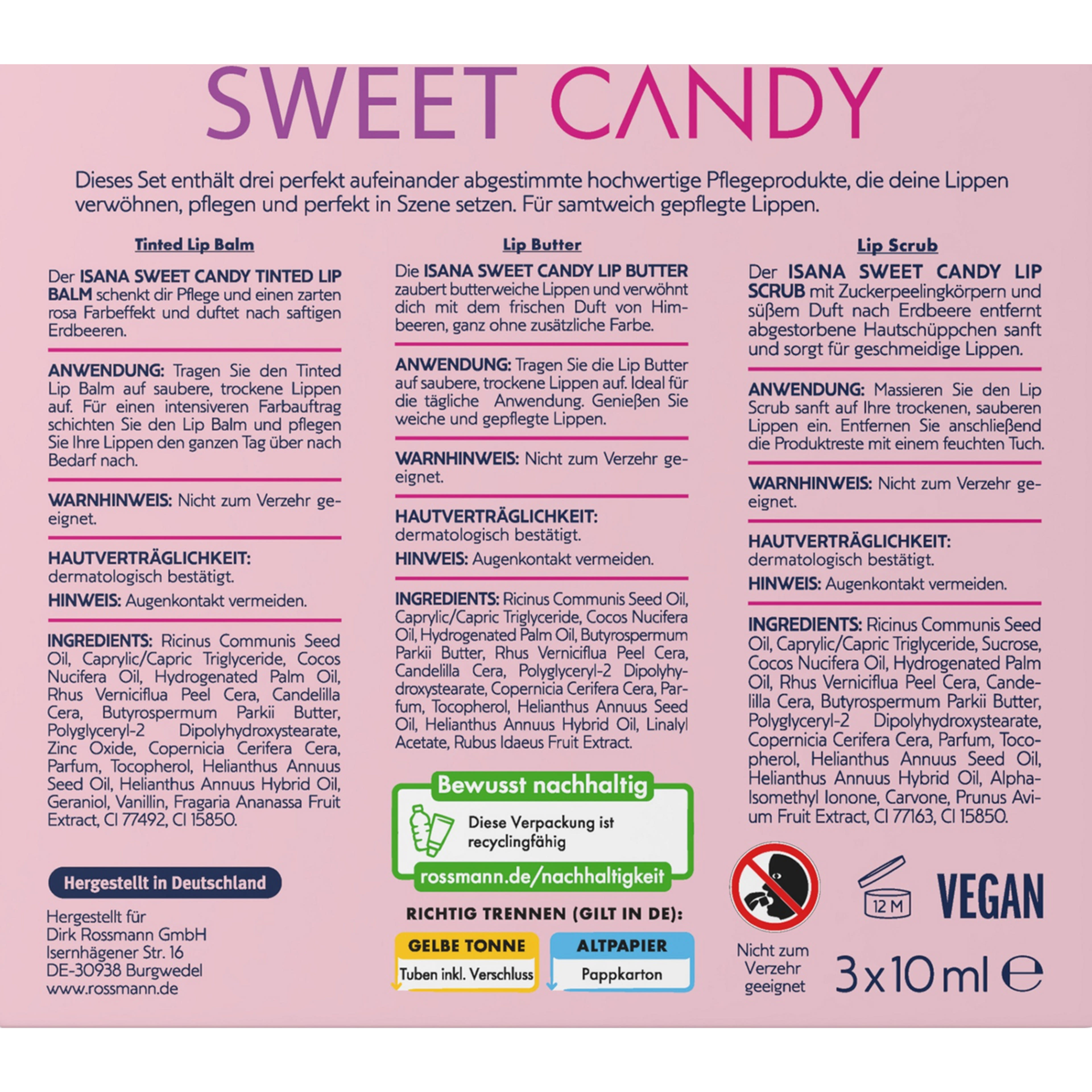Az ISANA SWEET CANDY TINTED LIP BALM (10 ml) gyengéd rózsaszín színárnyalatot és ápolást biztosít, valamint zamatos eperillatot áraszt.