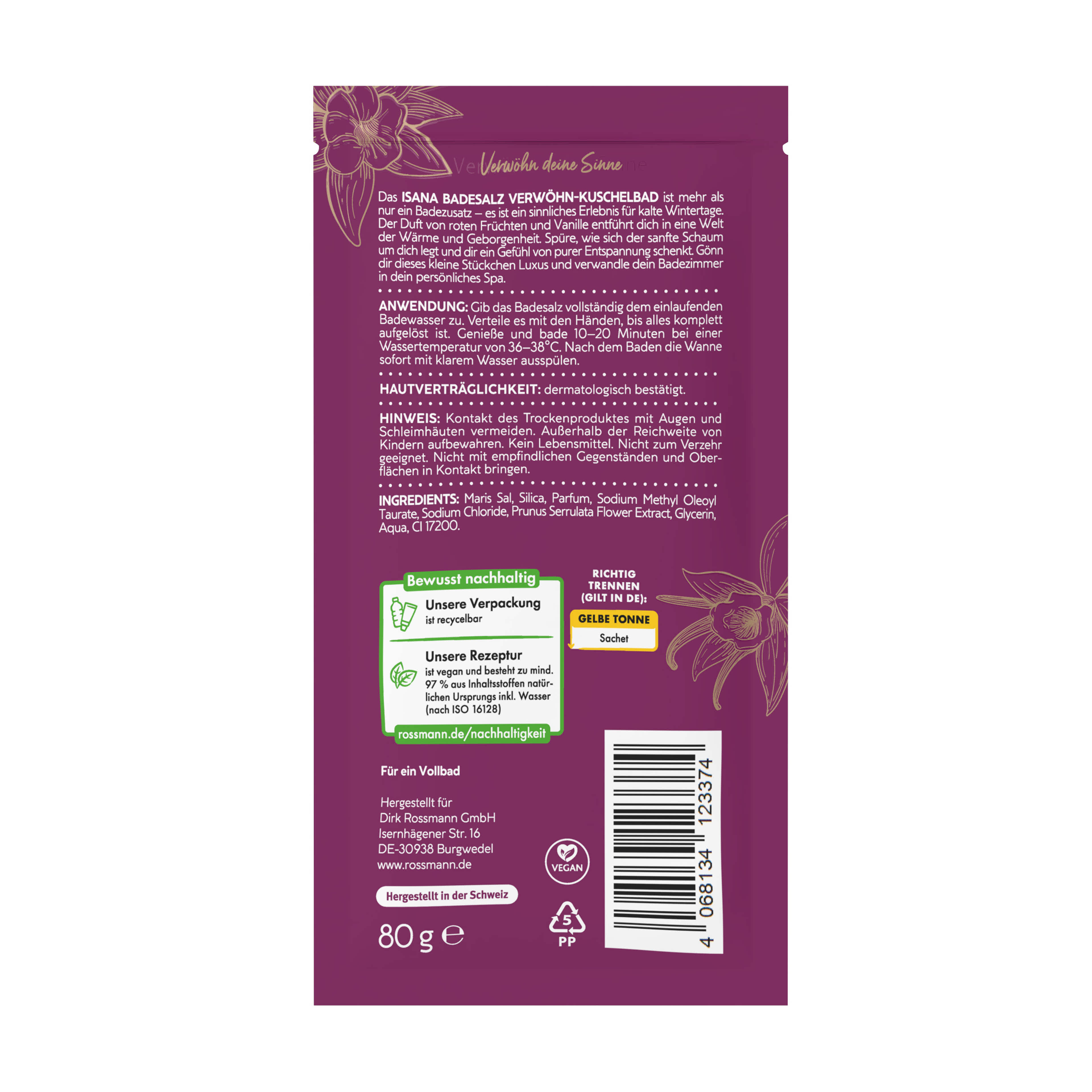 Isana fürdősó málna és vanília illattal - 80 g