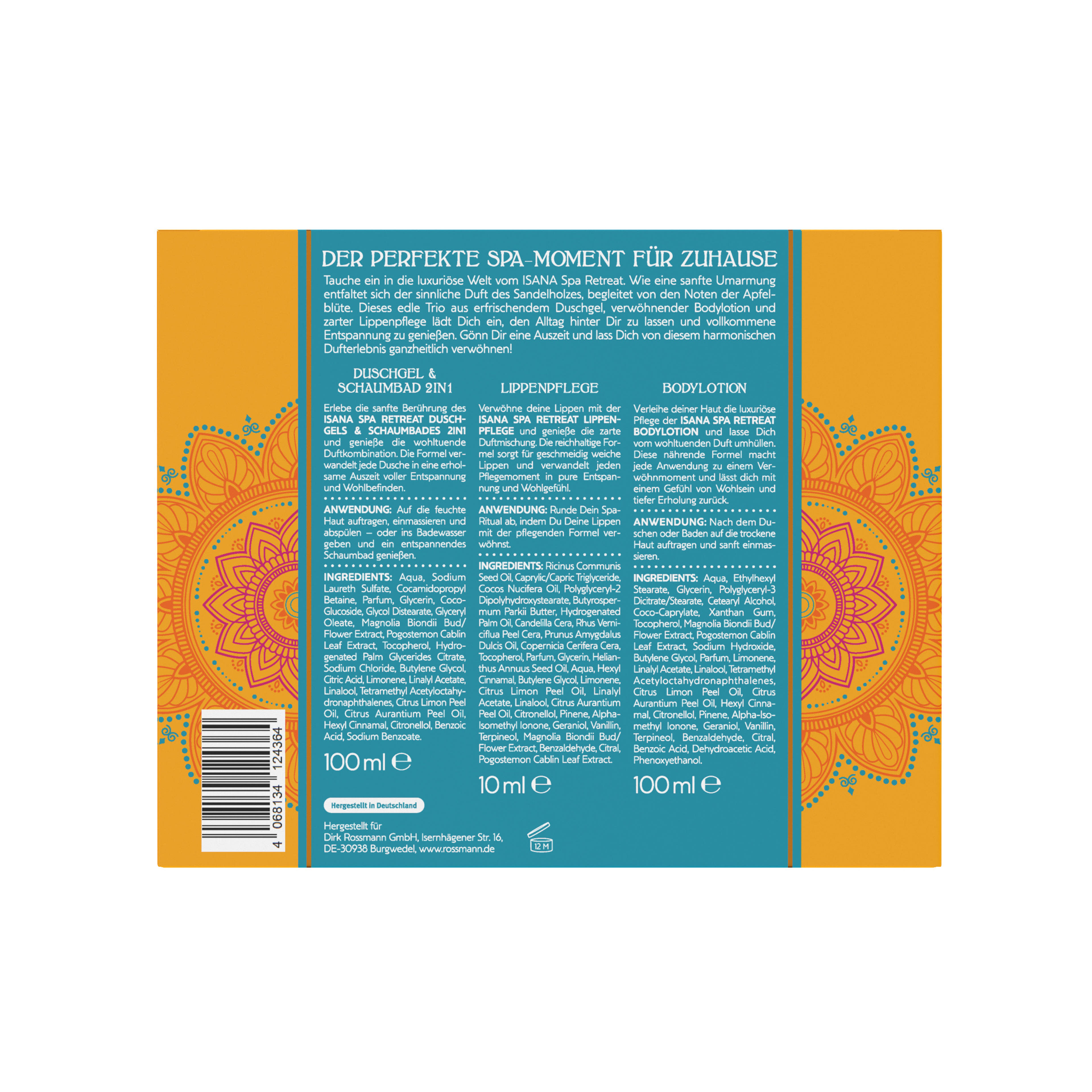 Merülj el az ISANA Spa Retreat luxus világában! A szantálfa érzéki illata, amelyet finom almavirág jegyek kísérnek, úgy ölel körbe, mint egy gyengéd, meleg ölelés. Ez a nemes hármas – a frissítő tusfürdő, a kényeztető testápoló és a lágy ajakápoló – arra hív, hogy magad mögött hagyd a hétköznapokat, és teljes harmóniában lazíts. Adj időt magadnak, és élvezd ezt a nyugtató, kiegyensúlyozó illatélményt!