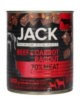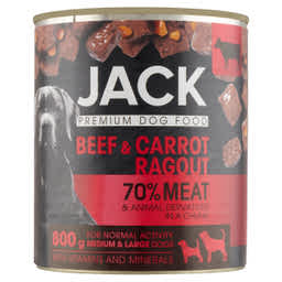Fedezd fel a JACK kutyakonzerv új ízét - a gazdag marha répa ragut! Csak a legkiválóbb marhahúsból és friss répából állítottuk össze ezt az ínycsiklandó ételt, hogy kutyád ne csak élvezze, de egészségét is támogassa. Kényeztesd meg négylábú barátodat a JACK minőségével, és élvezze a tápláló és gazdag ízvilágot minden falatban!