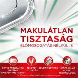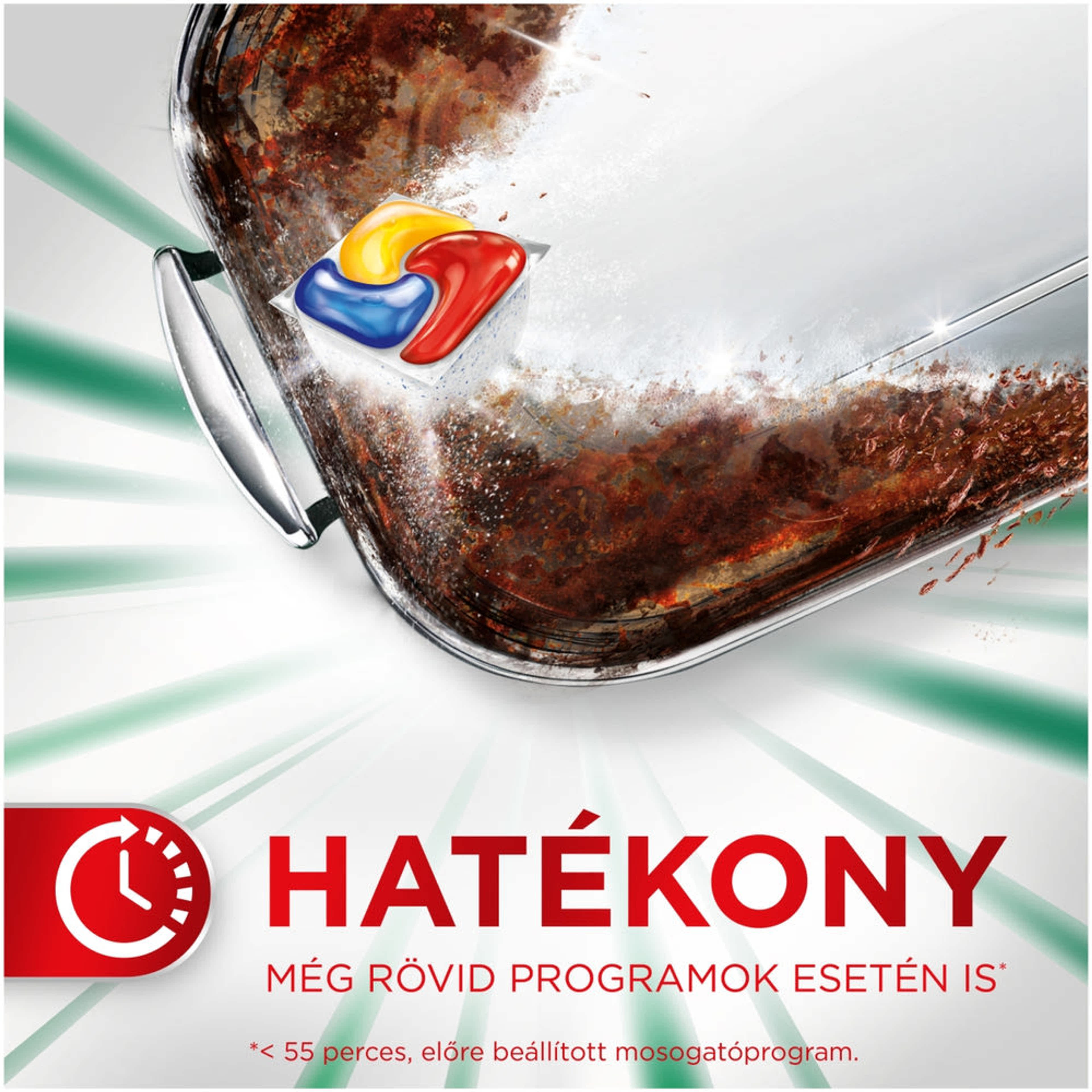 MÉG RÖVID PROGRAMOK ESETÉN IS HATÉKONY: Az intenzív hatású mosogatókapszula a folyékony és a por állagú mosogatószerek erejét ötvözi magában, így már az 1. alkalommal hatékonyan tisztít még rövid programok esetén is (< 55 perc)