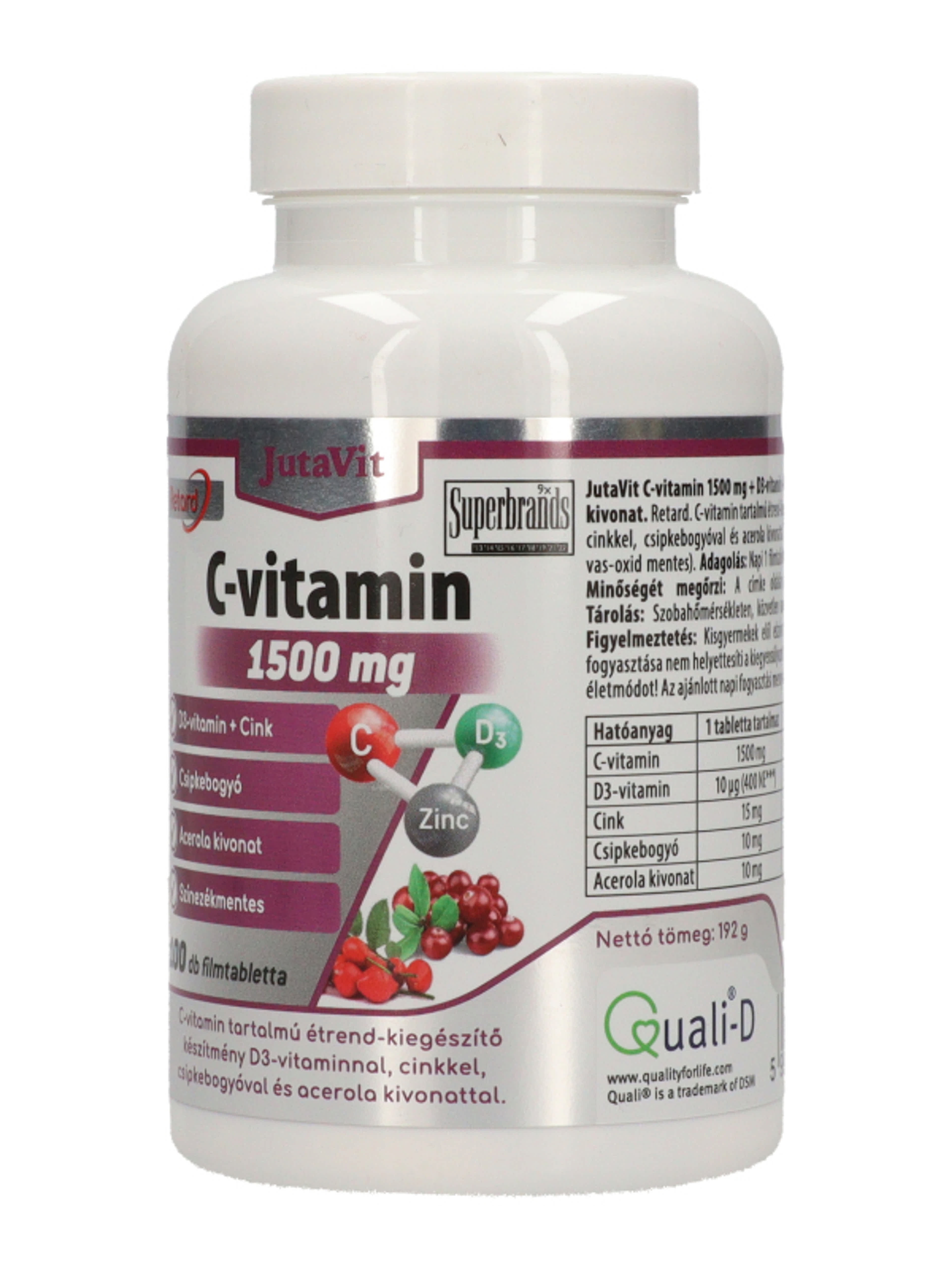 JutaVit C-Vitamin 1500mg Csipkebogyó+ Acerola+D3-Vitamin Filmtabletta - 100 db