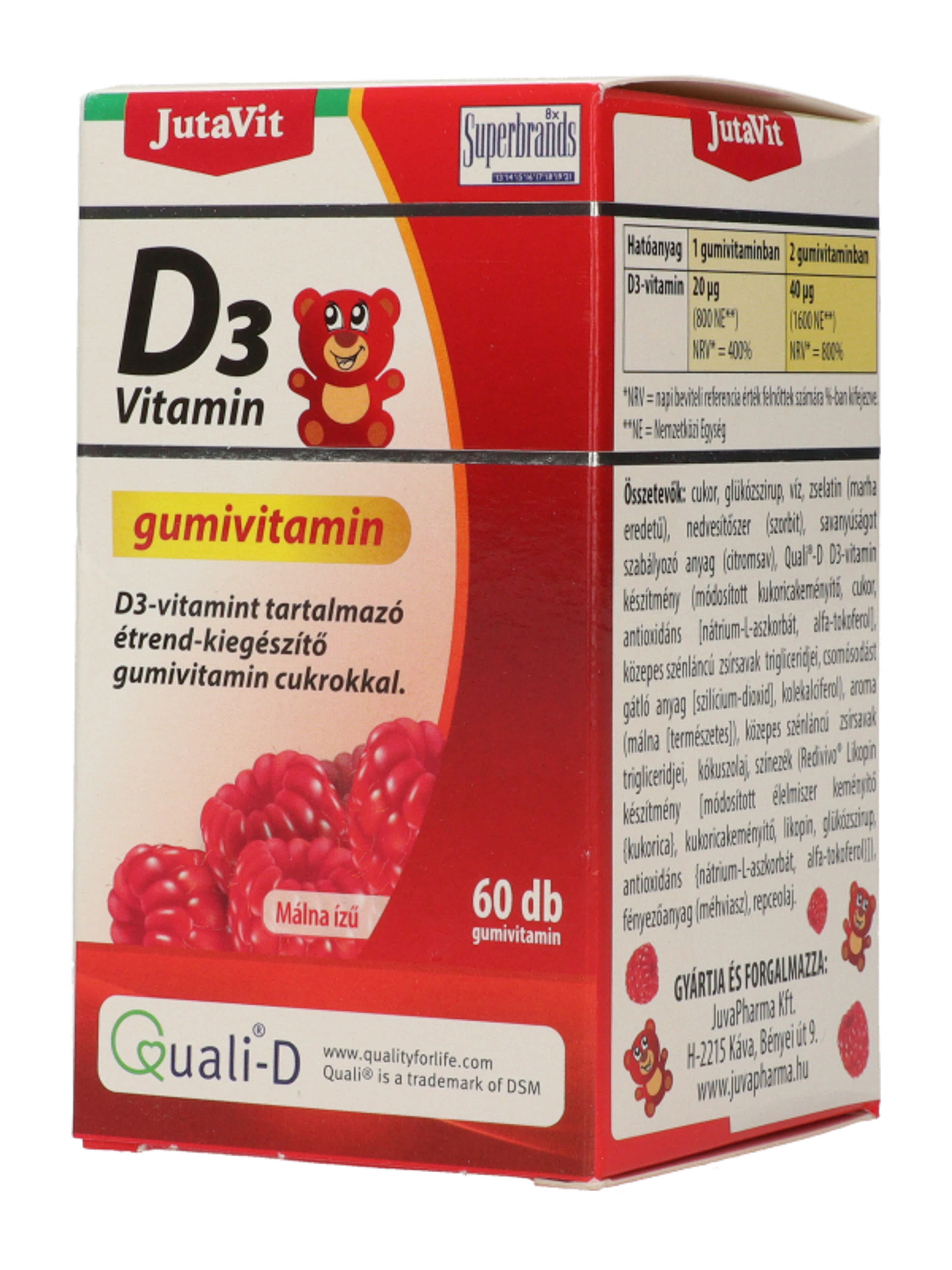 Jutavit D3-vitamin gumivitamin málna - 60 db