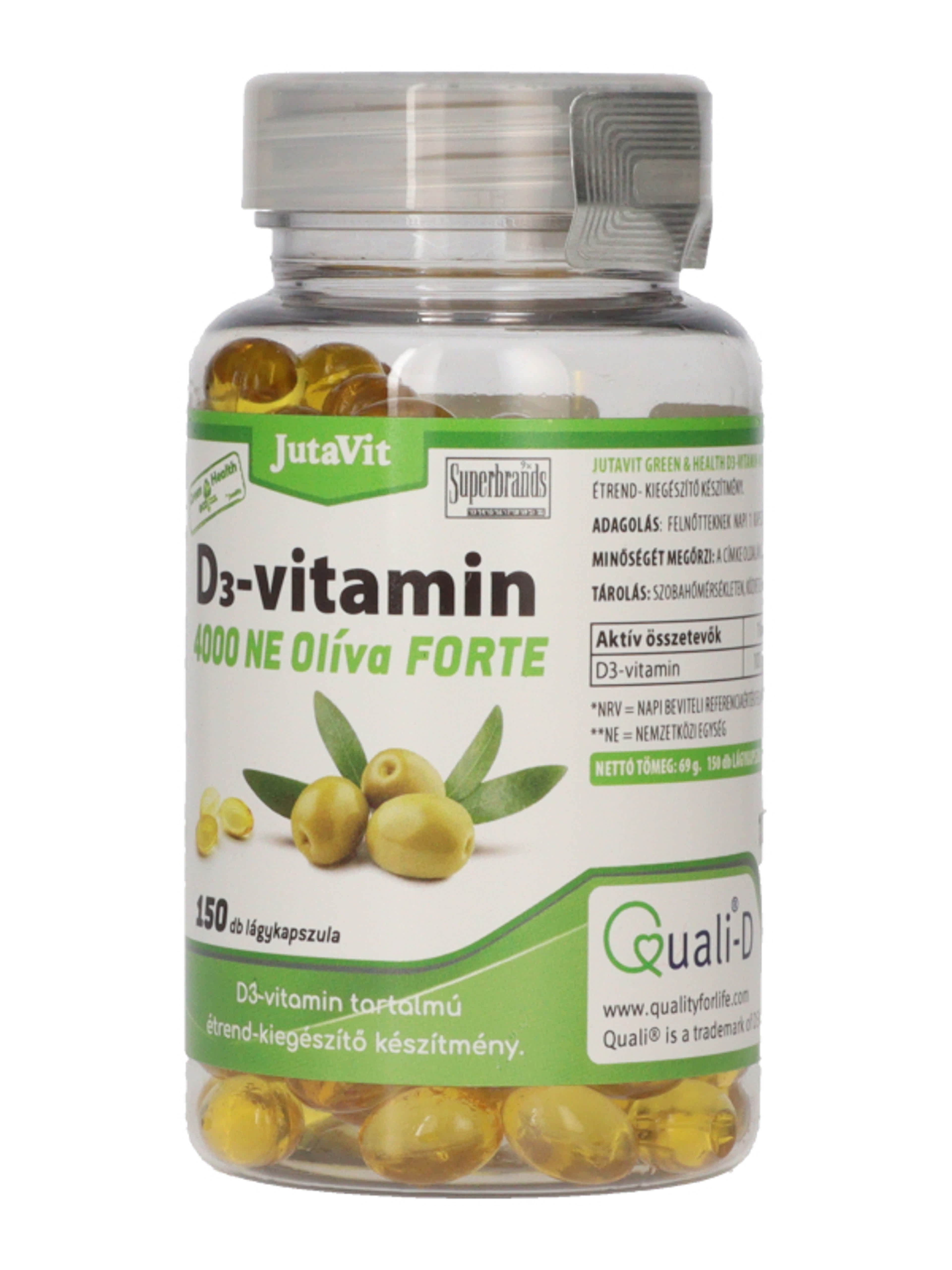 Jutavit Green & Health D3-vitamin 4000 NE Olíva Forte étrend-kiegészítő lágykapszula - 150 db