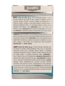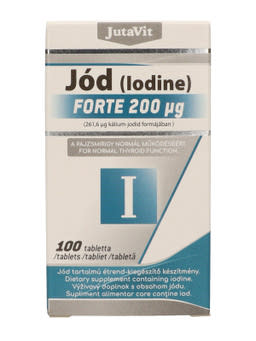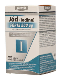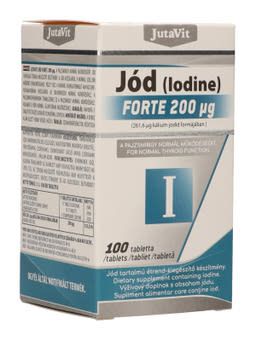 JutaVit Jód 200μg tabletta jódot tartalmazó étrend-kiegészítő. A jód hozzájárul a normál szellemi működés fenntartásához. Részt vesz a normál energiatermelő anyagcsere-folyamatokban. Hozzájárul az idegrendszer, a pajzsmirigyhormonok termeléséhez és a pajzsmirigy normál működéséhez, a bőr normál állapotának megőrzéséhez.