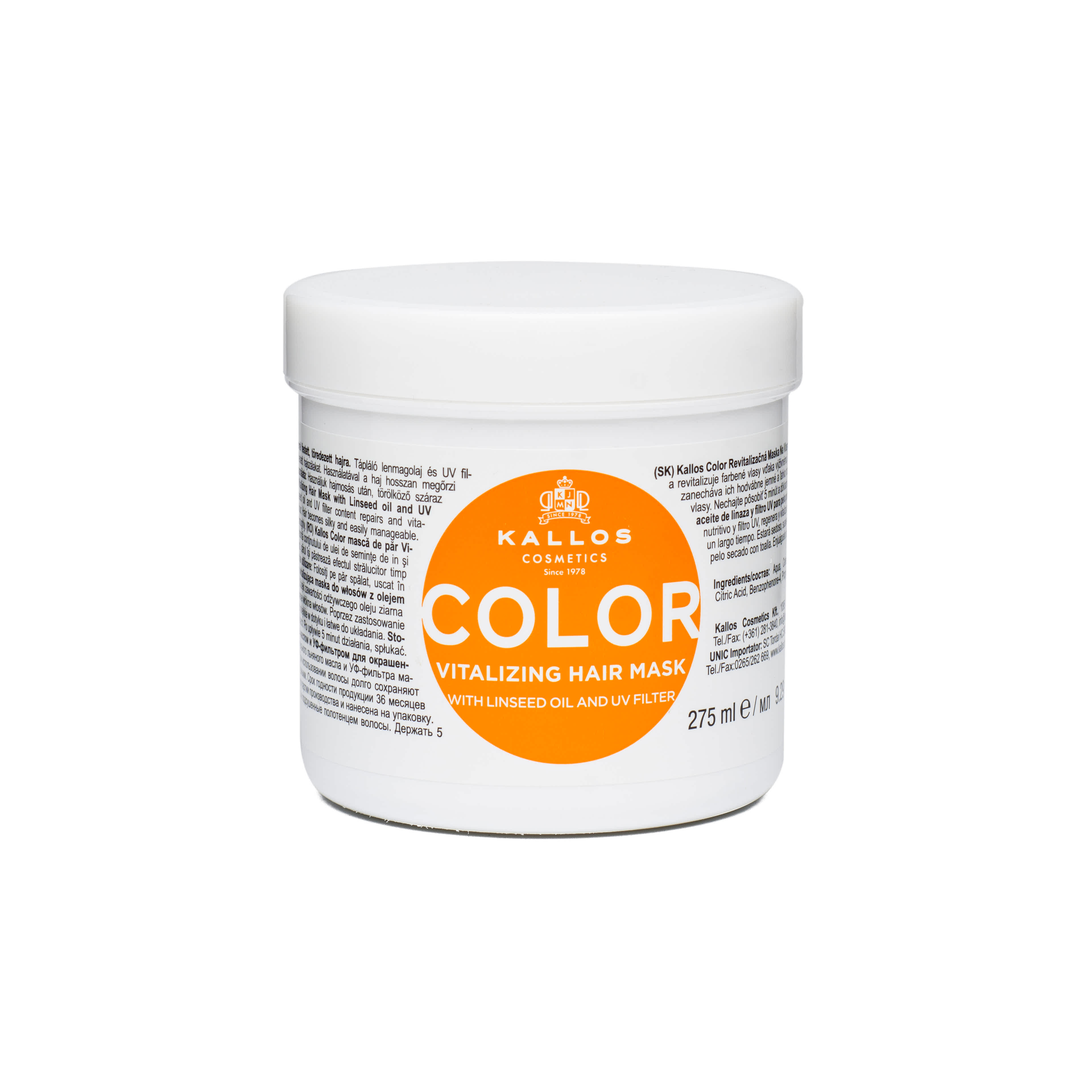 Kallos KJMN Color hajpakolás lenmagolajjal és UV filterrel - 275 ml