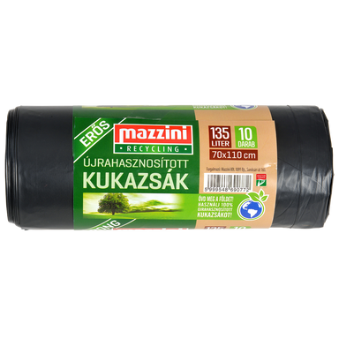 70*110 cm-es fekete színu kukaszsák rollniba tekercselve, színes papírcímkével átfogva..