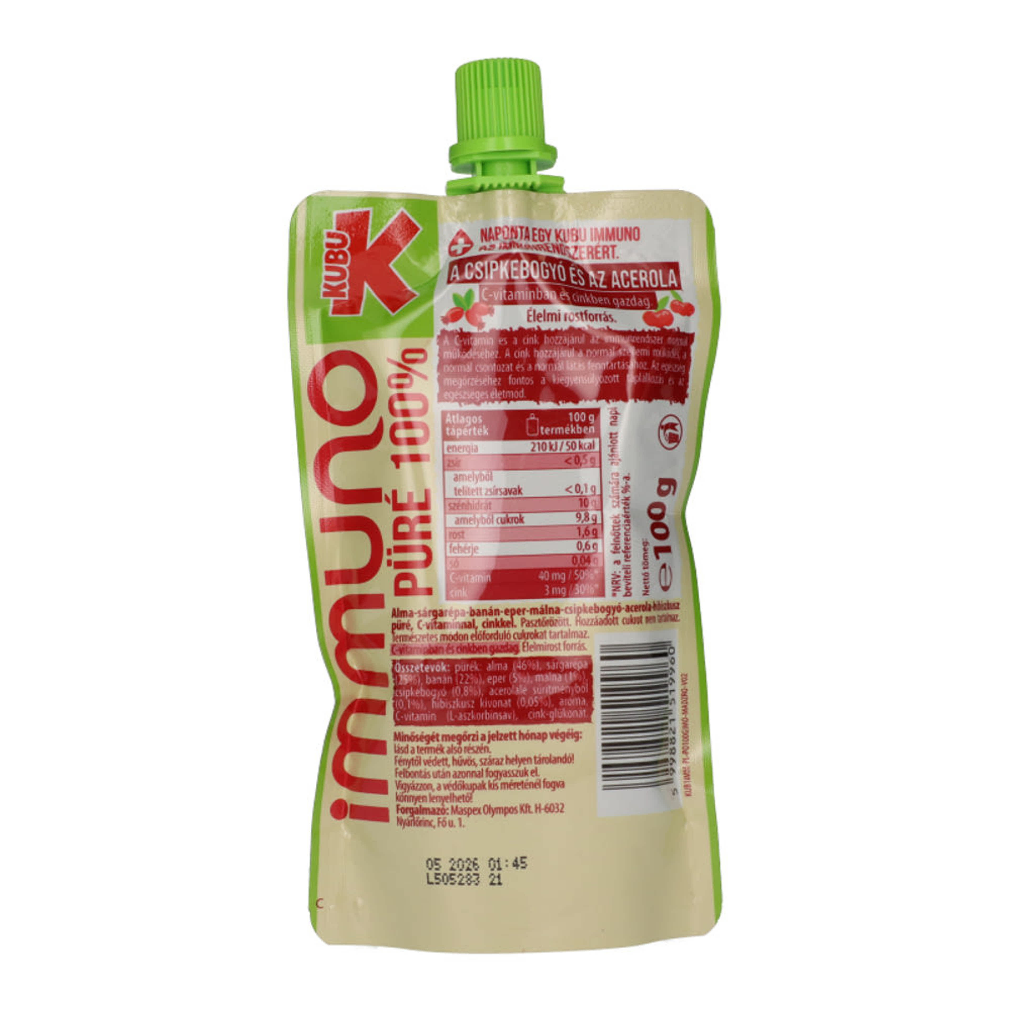 Kubu Immuno alma-banán-eper-sárgarépa gyümölcs- és zöldségpüré - 100 g