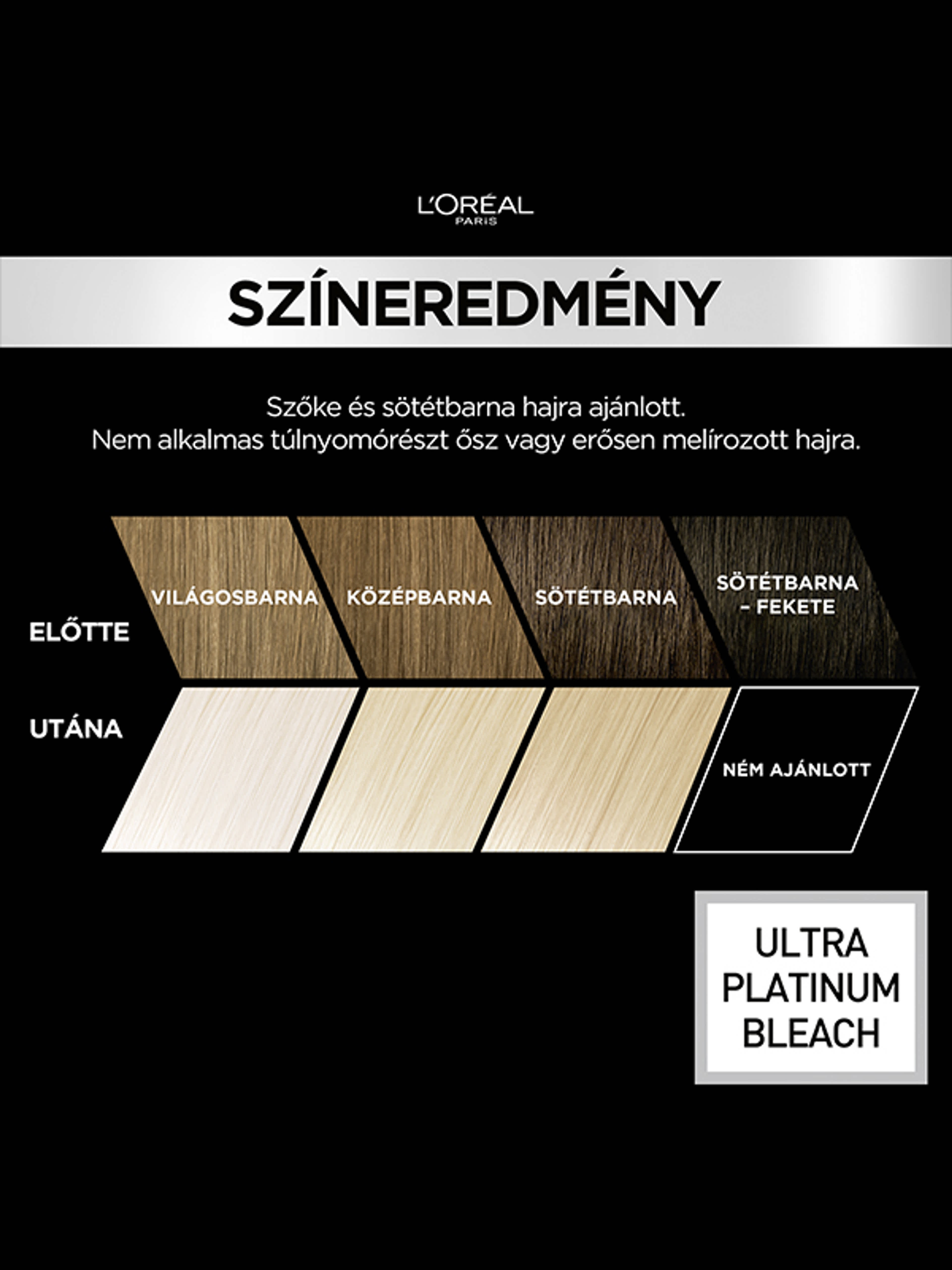 "Ez az Extrém platinaszőke hajfesték akár 8 árnyalatot világosít, így használata sötét hajra is alkalmas."