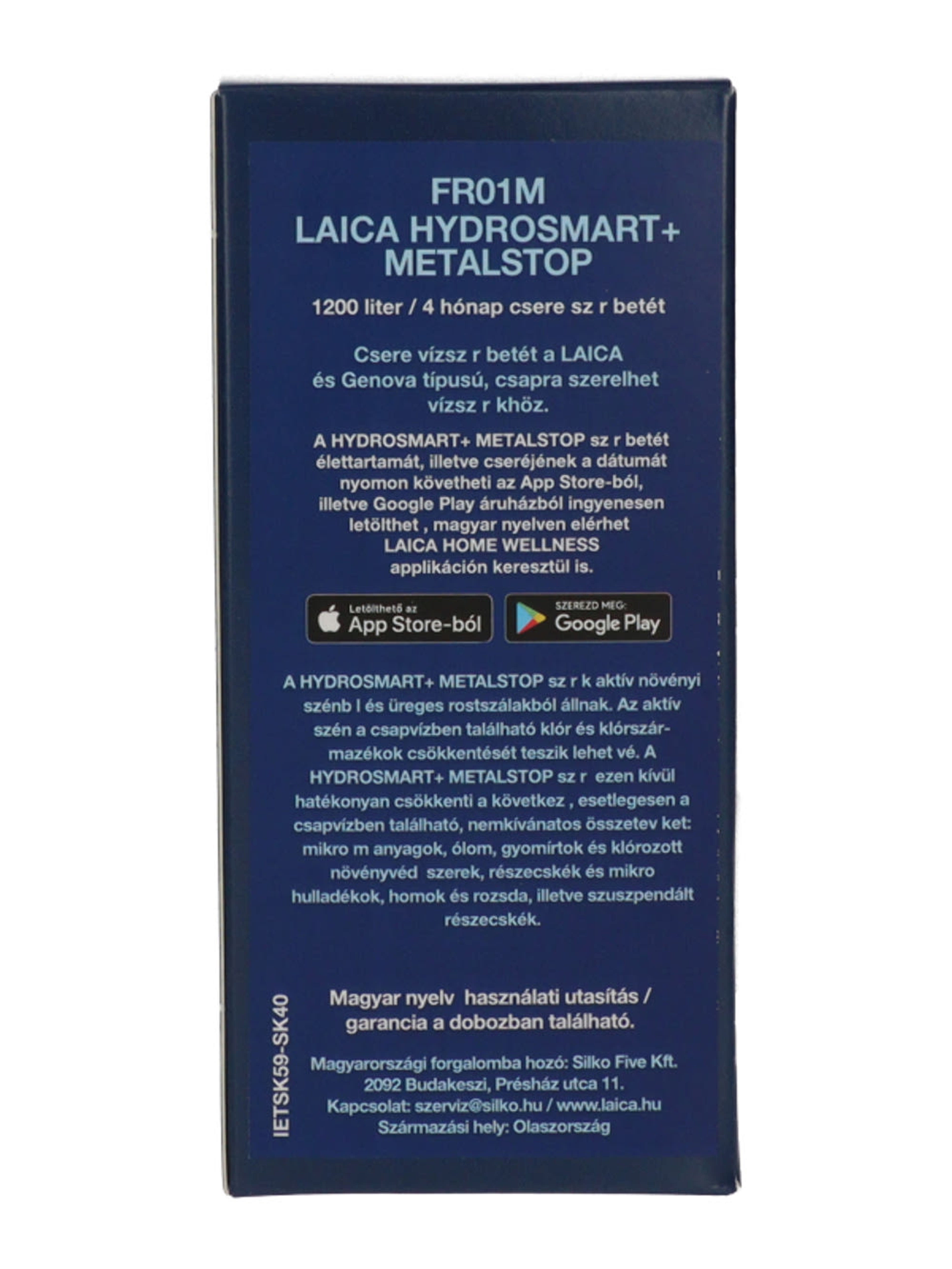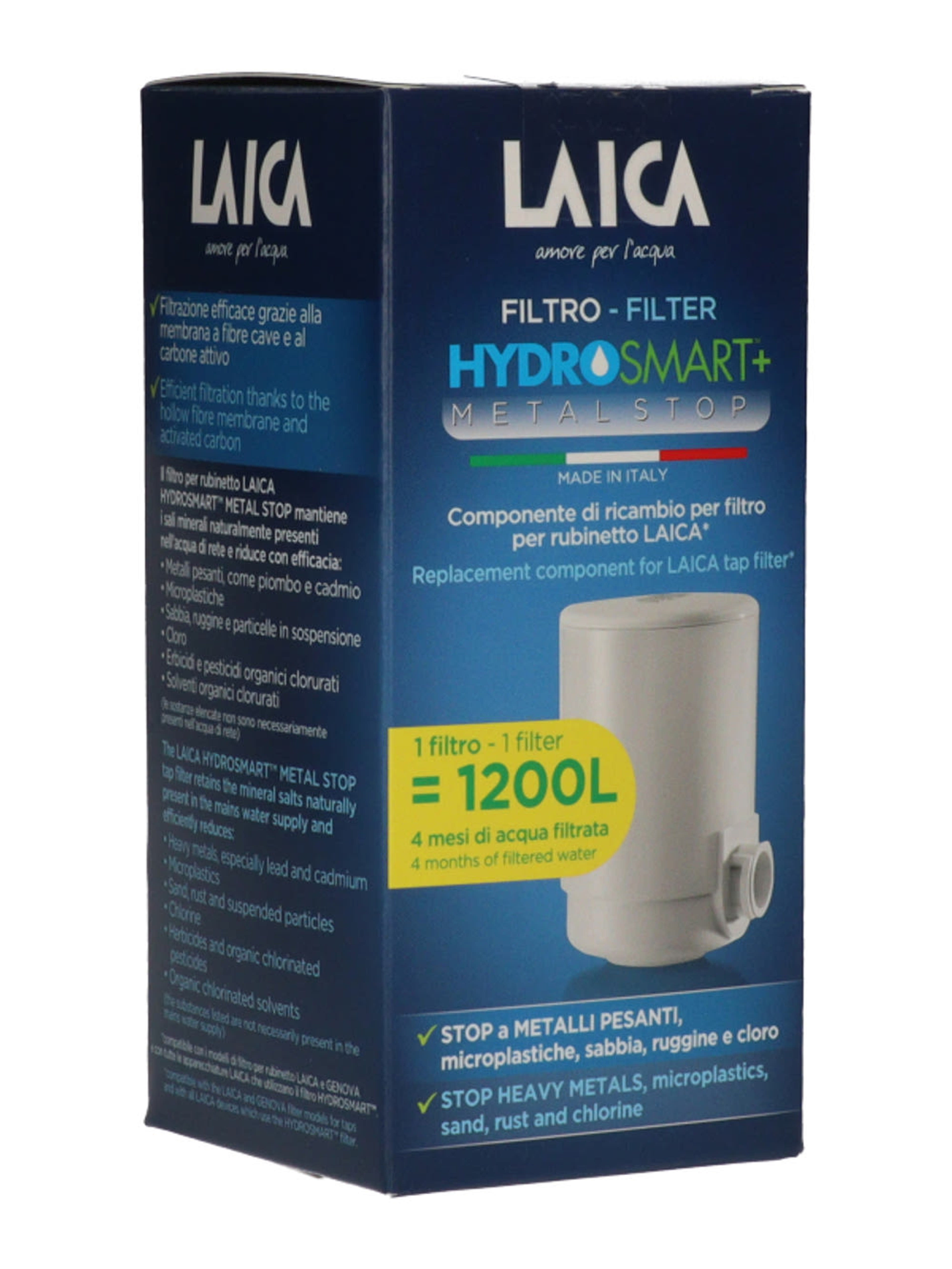 1200 liter szűrt víz / 4 hónap időtartam A HYDROSMART™ METAL STOP LAICA szűrő olyan vizet szűr, amely MINDEN ESETBEN IHATÓ és mikrobiológiailag biztonságos. HYDROSMART SZŰRŐRENDSZER vízszűrő betét cseréjéhez használd az INGYENESEN LETÖLTHETŐ LAICA HOME WELLNESS ALKALMAZÁST!