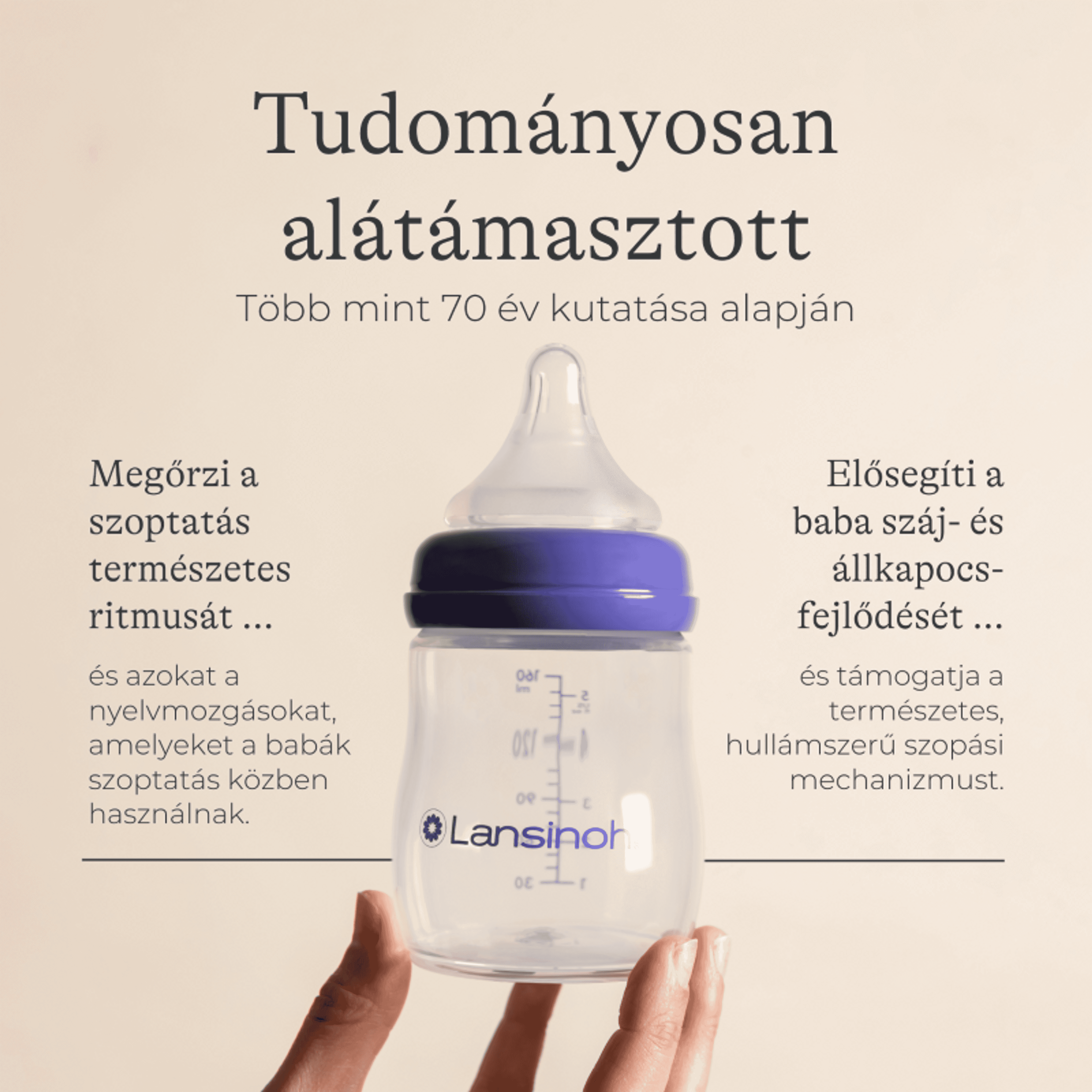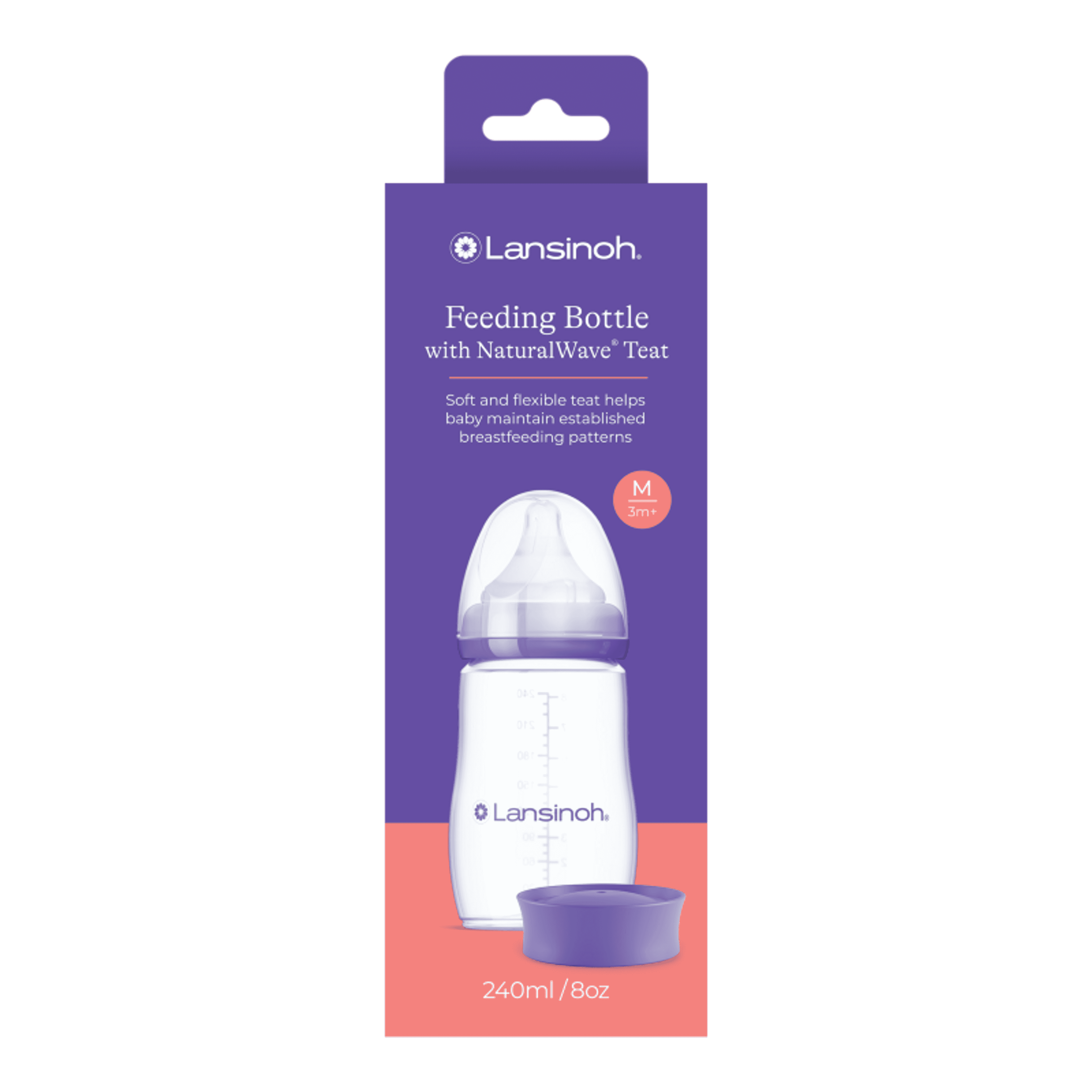 Lansinoh cumisüveg közepes folyású etetőcumival + fedéllel, 240 ml - 1 db