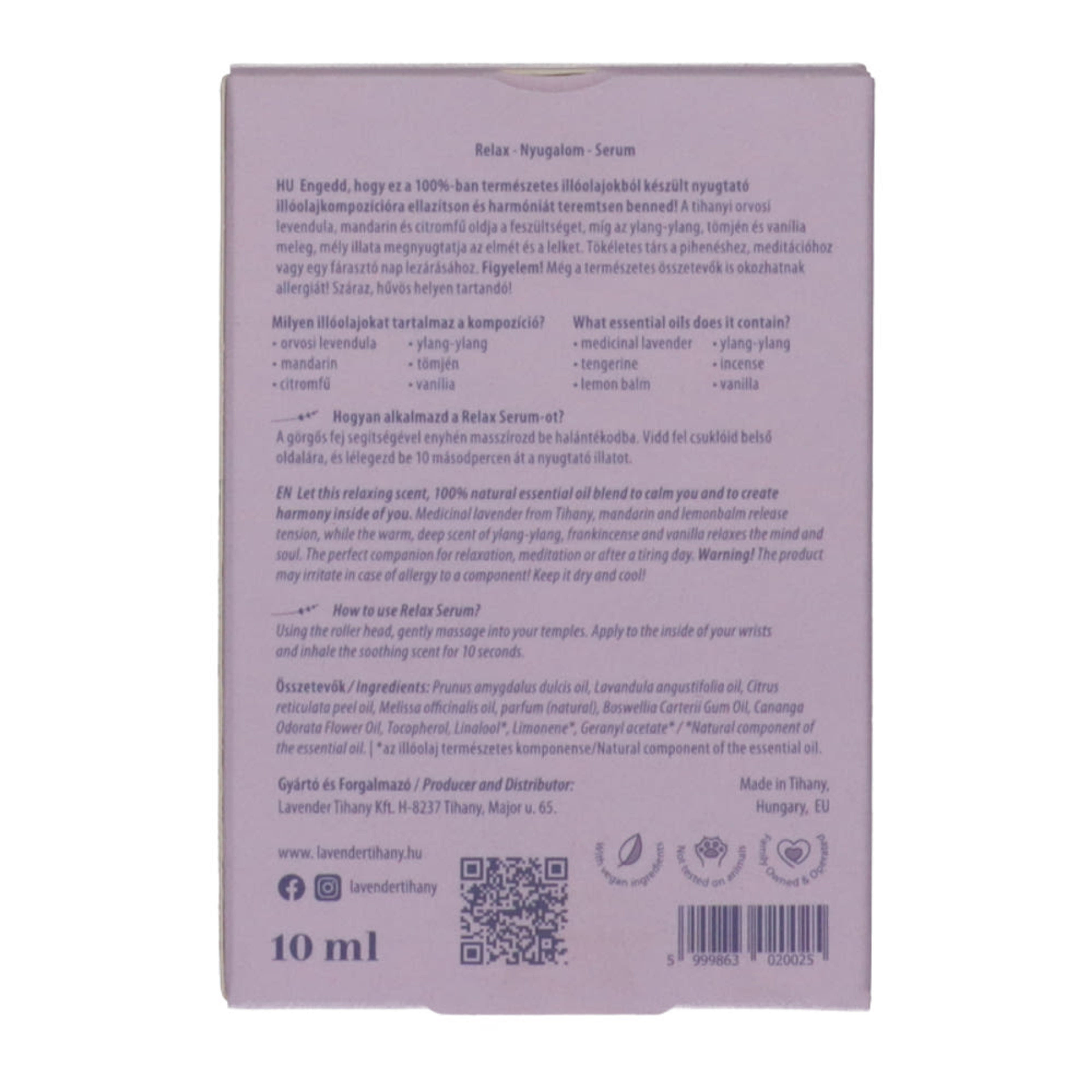 Prunus amygdalus dulcis oil, Lavandula angustifolia oil, Citrus reticulata peel oil, Melissa officinalis oil, parfum (natural), Boswellia Carterii Gum oil, Cananga Odorata Flower oil, Tocopherol, Limonene*, Linalool*, Geranyl acetate*|*Az illóolaj természetes komponense.