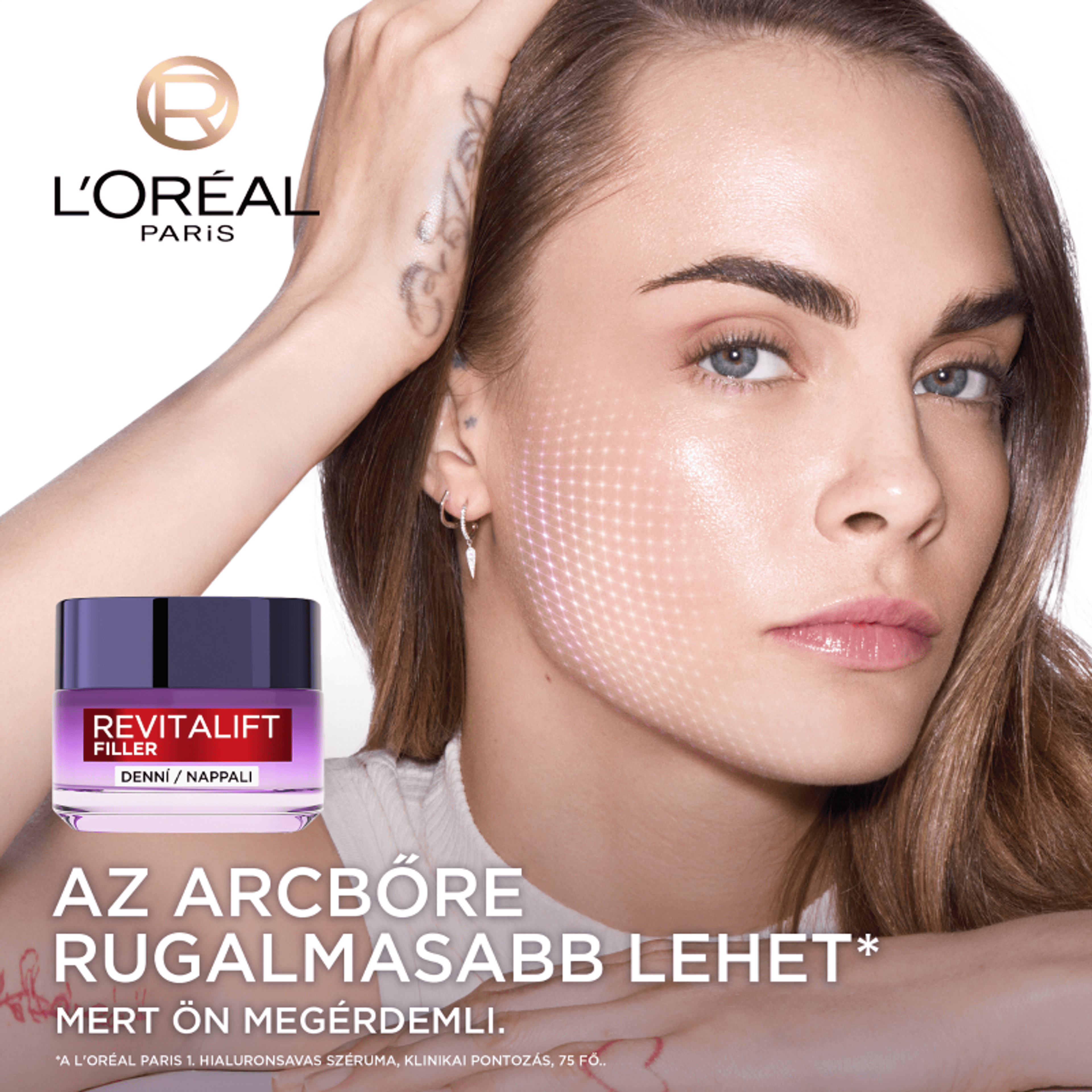 A L'Oréal Paris megújított formulája most egy fejlett technológiát tartalmaz: a hatékony, hosszan tartó hialuronsavatCX. Az új formula a bőr felszínén ellenálló réteget képez, amely akár 7 napig is képes rögzíteni a hidratálást*. A formula intenzíven** behatol a ráncok feltöltéséért és a bőr teltségének regenerálásáért. A hatékony formula 3 féle hialuronsavat tartalmaz az intenzíven hidratáló és teltséget adó hatásért. • Nagy molekulasúlyú hialuronsav: hidratálja a bőrfelszínt, • Kis molekulasúlyú hialuronsav: nedvességgel tölti fel a bőr felső rétegét, • Mikroepidermális hialuronsav: belülről tölti fel a ráncokat és intenzíven** hidratálja a bőrt. *Műszeres teszt, 58 nő 5 hét használat + 1 hét fennmaradó hatás. **a bőr felső rétegeibe