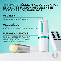 Az UV-sugárzás elleni stift nagyon magas SPF védelmet nyújt az UVB- és UVA-sugarak ellen. Segít megelőzni a sötét foltok megjelenését és a bőröregedés jeleit. Minden bőrtónuson láthatatlan. Hidratálja is a bőrt. Érzékeny bőrre és a bőr száraz területeire (szemkörnyék, ajak) is megfelelő stift. Felvihető sminkelés előtt vagy után.
