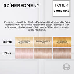 KÖTELEZŐ HASZNÁLATI UTASÍTÁSOK A HAJFESTÉKEK/HAJSZÍNEZŐK SÚLYOS ALLERGIÁS REAKCIÓT VÁLTHATNAK KI. Olvassa el és kövesse az utasításokat! Ezt a terméket nem 16 éven aluli személyeknél való alkalmazásra szánták. AZ IDEIGLENES “FEKETE HENNA” TETOVÁLÁS NÖVELHETI AZ ALLERGIA KIALAKULÁSÁNAK KOCKÁZATÁT. • Ne használjon hajfestéket/hajszínezőt, ha : • Arcán kiütés van, vagy fejbőre érzékeny, irritált vagy sérült. • Hajfestés után bármikor, bármilyen reakciót észlelt. • Korábban, ideiglenes « fekete henna » tetoválás során valamilyen reakciót észlelt. EGY ALLERGIA FIGYELMEN KÍVÜL HAGYÁSA ÉLETVESZÉLYES LEHET. Kötelezően végezzen ALLERGIÁRA FIGYELMEZTETŐ BŐRPRÓBÁT mindenképpen 48 órával a termék minden használata előtt, akkor is, ha már használt előtte bármikor hajfestéket. Ne felejtse el előre megvenni hajfestékét, hogy elvégezhesse az allergiára figyelmeztető bőrpróbát 48 órával a hajfestés előtt. (Olvassa el és kövesse a használati útmutatót.) Bármilyen reakció vagy kétely esetén beszéljen orvossal bármely hajfesték/hajszínező használata előtt. -A színelőhívó a hidrogén-peroxidot tartalmaz. - A hajfesték fenilén-diaminokat, fenilén-diaminokat (toluol-diamint), rezorcint, és ammóniát tartalmaz. - A termék ne kerüljön szembe, ne használja szempilla és szemöldök festésére. - Amennyiben a festék szembe jut, azonnal öblítse ki bő vízzel. -Viselje a dobozban található kesztyűt. - A hajfestés végén alaposan öblítse le a hajat! - Dauerolás, hajkiegyenesítés vagy tartós hajkiegyenestés után várjon legalább 2 hetet a termék használatával. - Ne használja hennával vagy hajszín-regenerálóval festett hajon. - Gyermekektől elzárva tartandó! KÖVESSE A HASZNÁLATI ÚTMUTATÓT! Az összetevők listája a csomagolás alján található.