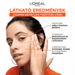 LÁTHATÓ EREDMÉNYEK CSUPÁN EGYETLEN TISZTÍTÁS UTÁN: Tiszta bőr, amely puhának érződik. A PÓRUSOK megtisztulni és összehúzódni látszanak. A BŐRTEXTÚRA finomabb és simább. A RAGYOGÁS fokozódik.