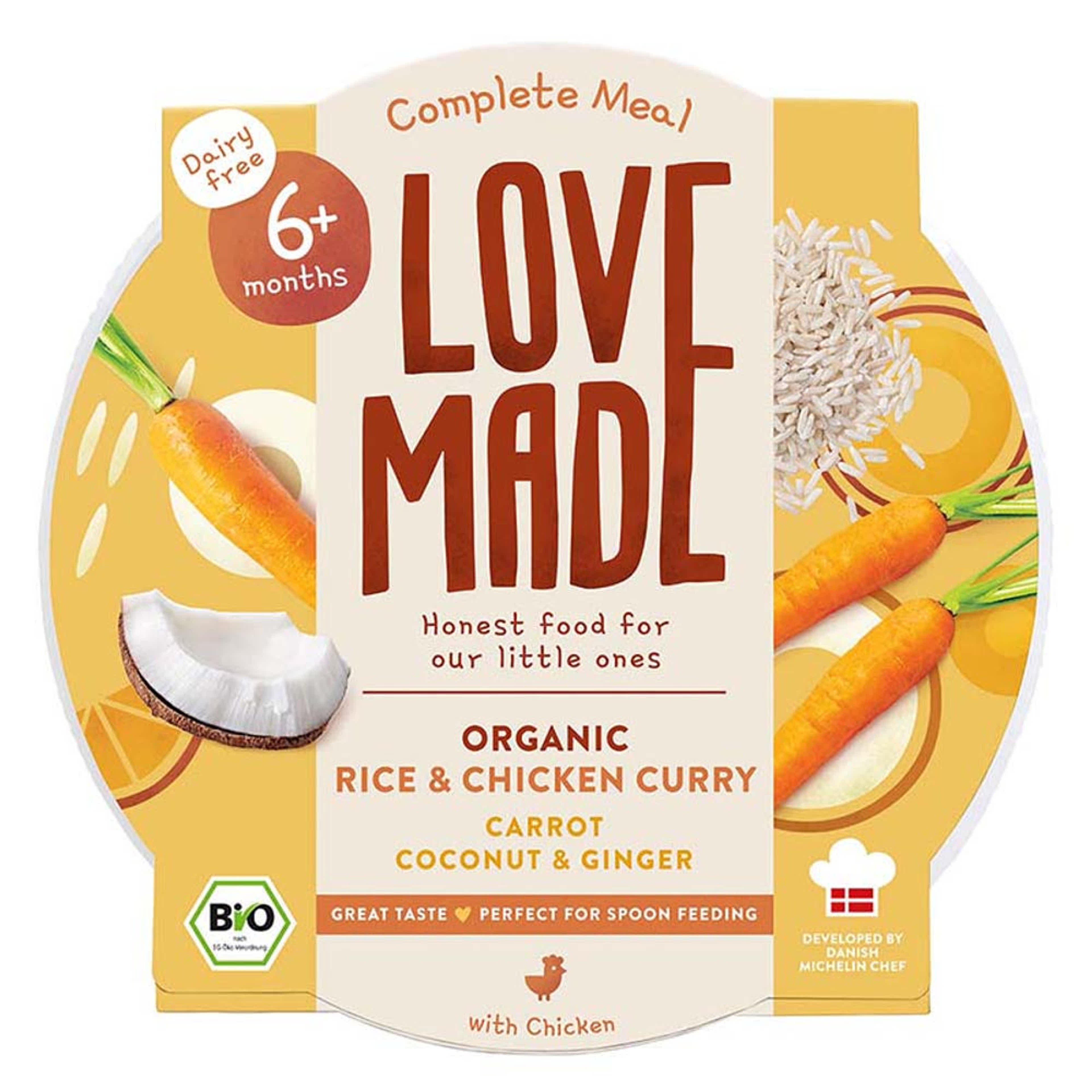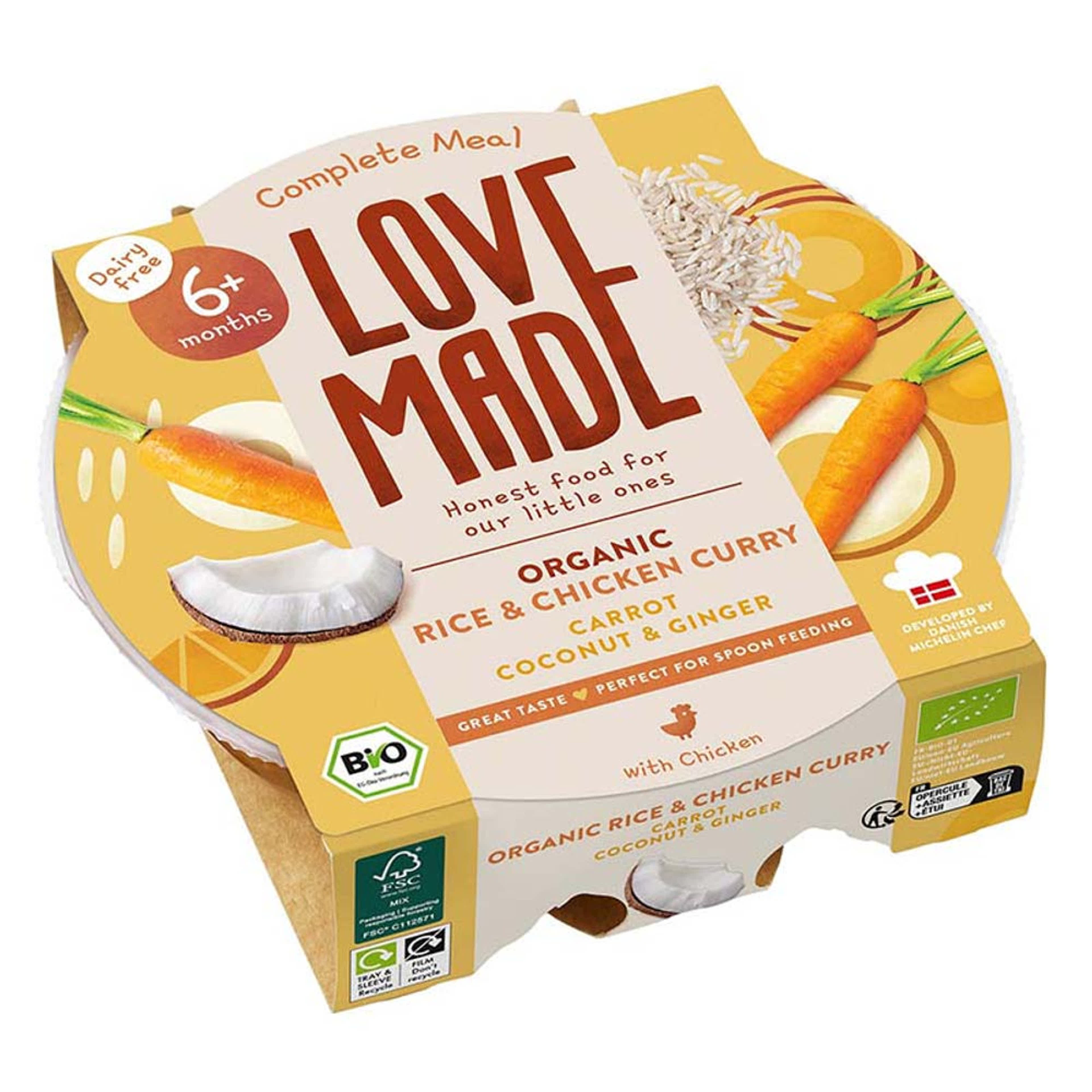 LoveMade Bio Currys csirke rizzsel 6 hónapos kortól - 185 g