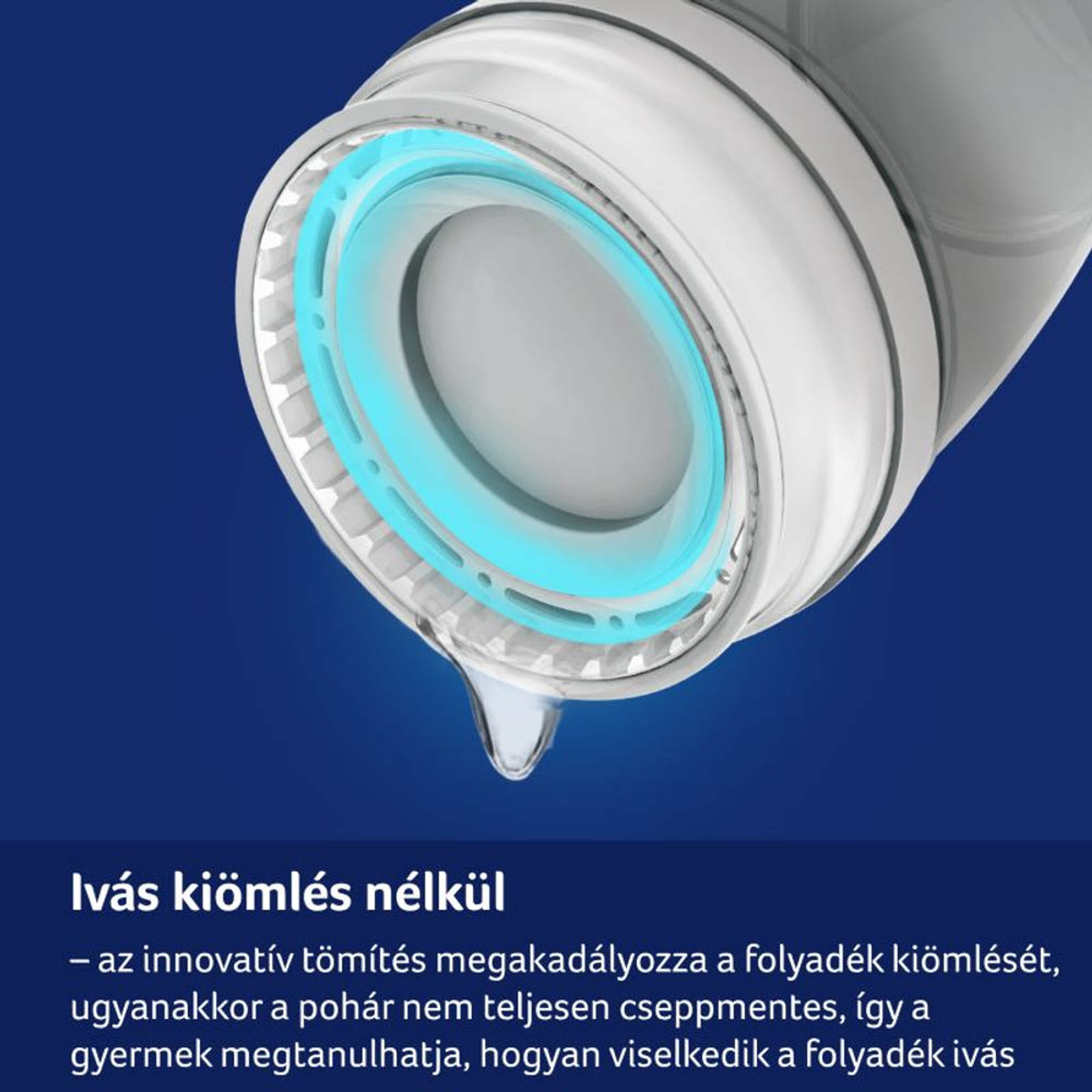 Megtanítja a gyermeket a pohárból való ivásra, anélkül, hogy a folyadék kiömlene Saniconcentrate™ antibakteriális védelem Könnyen tisztítható a kevesebb alkatrésznek köszönhetően A membrán külön is megvásárolható Gyermeke biztonsága és egészsége érdekében
