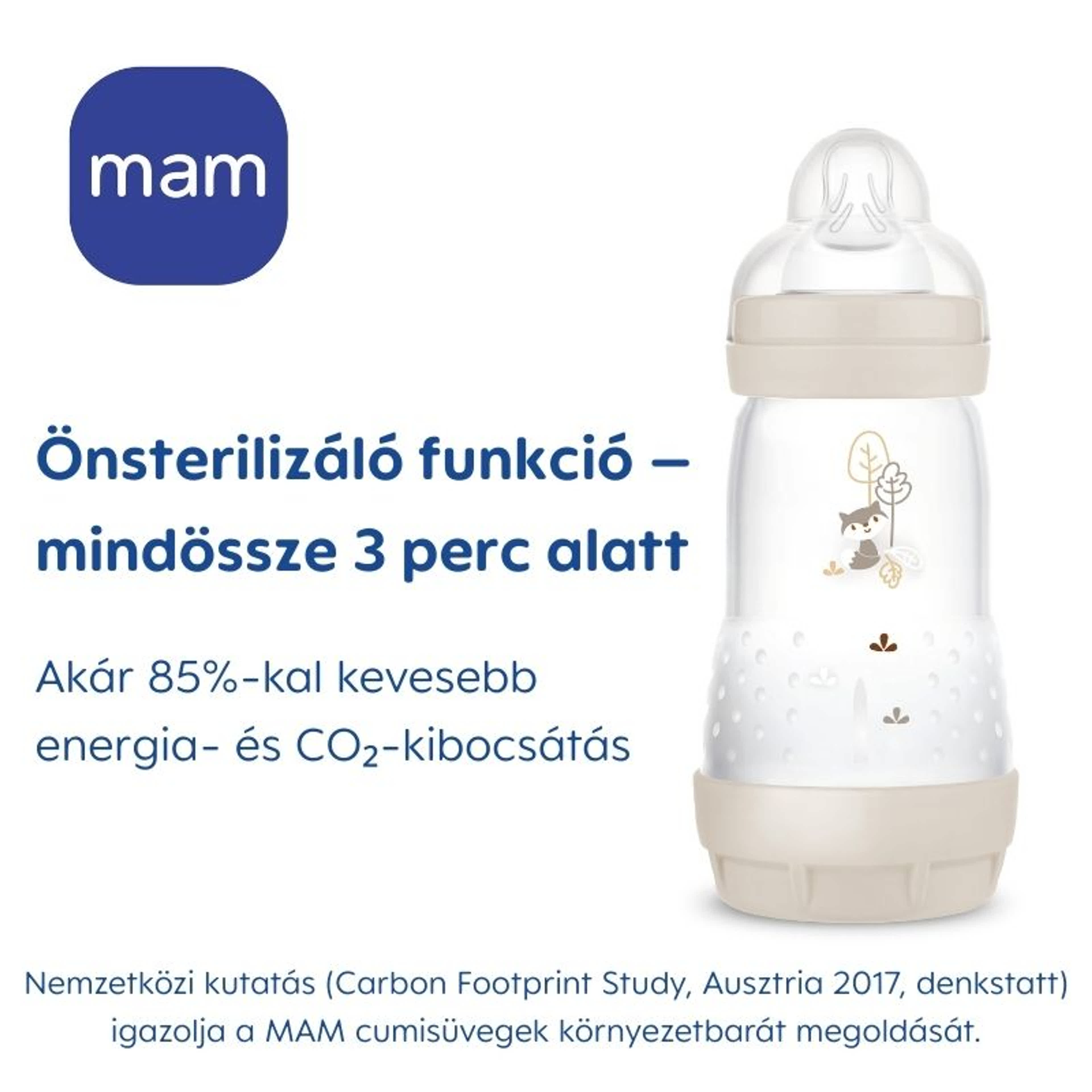Minden MAM termék BPA/BPS-mentes alapanyagból készül (BPA esetén az EU 321/2011 számú rendeletnek megfelelően)