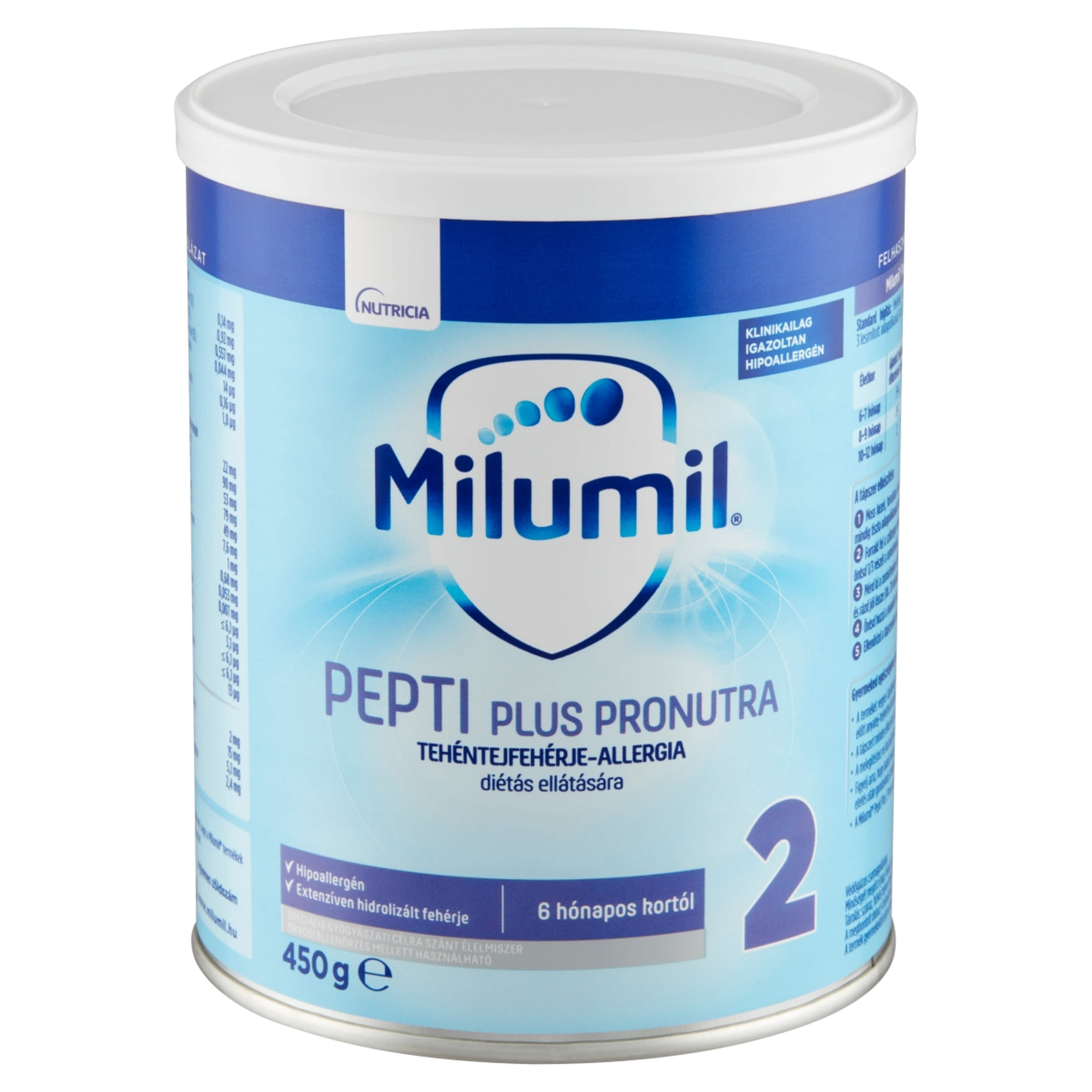 Maltodextrin, Tejsavófehérje hidrolizátum, Növényi olajok (pálmaolaj, kókuszolaj, repceolaj, magas olajsavtartalmú napraforgóolaj, napraforgóolaj), Galaktooligoszacharid (tejből), Kalcium-foszfát, Emulgeálószer (zsírsavak mono- és digliceridjeinek citromsavésztere), Frukto-oligoszacharid, Halolaj, Kálium-klorid, Magnézium-hidrogén-foszfát, Mortierella alpina olaj, Nátrium-klorid, Kolin-klorid, L-tirozin, L-aszkorbinsav, Inozit, Taurin, Nátrium-L-aszkorbát, Vas-szulfát, Cink-szulfát, L-karnitin, Nátrium-citrát, DL-alfa tokoferil acetát, Uridin-5'-monofoszfát nátrium sója, Citidin-5'-monofoszfát, Kalcium-D-pantotenát, Adenozin-5'-monofoszfát, Inozin-5'-monofoszfát nátriumsója, Nikotinamid, Guanozin-5'-monofoszfát nátriumsója, Réz-szulfát, DL-alfa-tokoferol, Retinil-palmitát, Riboflavin, Tiamin-hidroklorid, Piridoxin-hidroklorid, Kálium-jodid, Pteroil-monoglutaminsav, Mangán-szulfát, Retinil-acetát, Nátrium-szelenit, Fitomenadion, D-biotin, Kolekalciferol, Cianokobalamin