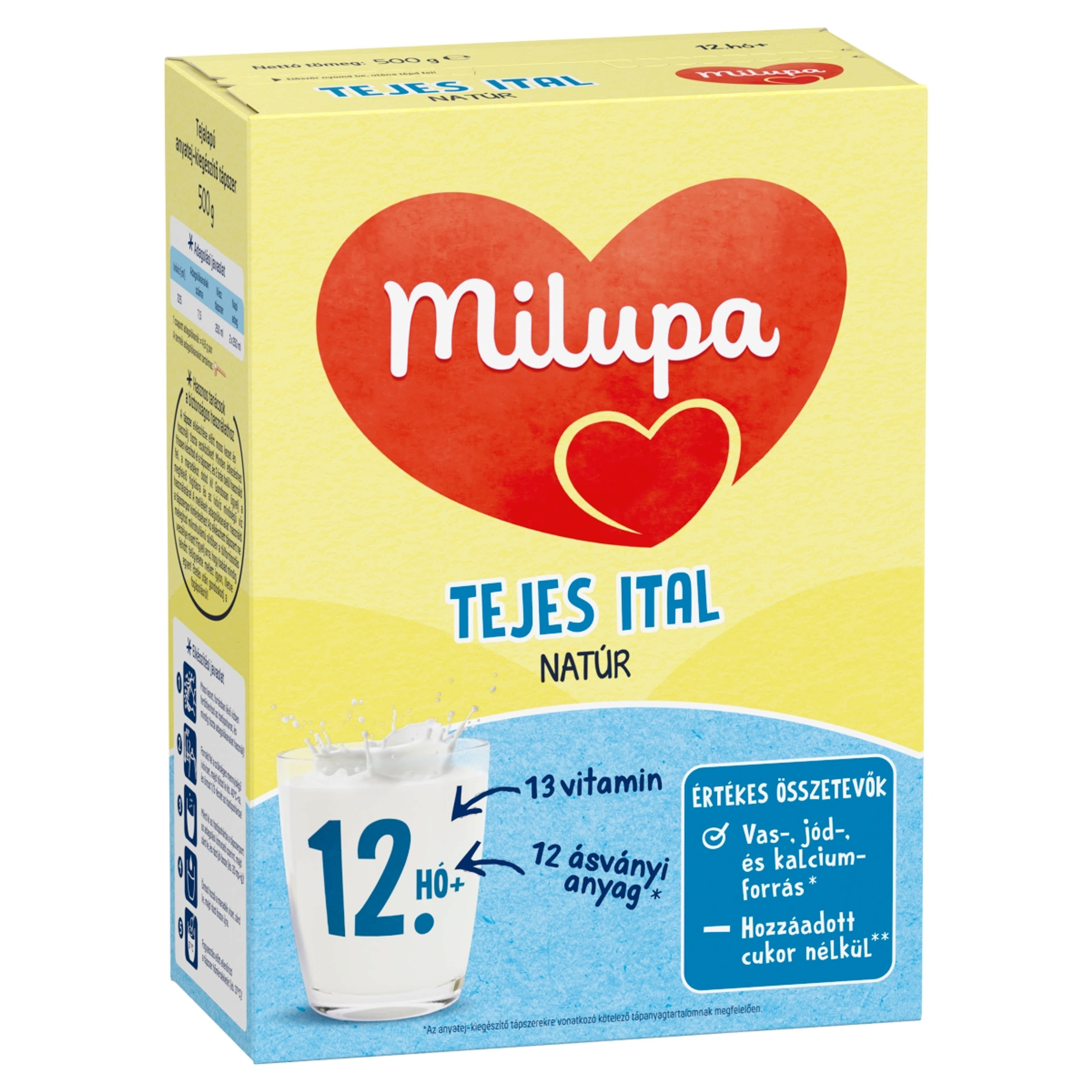 Laktóz (tejből), Növényi olajok (magas olajsavtartalmú napraforgó-, kókusz-, repce-, napraforgóolaj), Sovány tejpor, Demineralizált tejsavó, Galakto-oligoszacharidok (tejből), Tejsavó koncentrátum, Tejfehérje, Trikalcium-foszfát, Halolaj, Frukto-oligoszacharidok, Kalium-klorid, Nátrium-citrát, Kolin-klorid, Magnézium-hidrogén-foszfát emulgeálószer (szójalecitin), L-aszkorbinsav, Nátrium-L-aszkorbát, Kálium-citrát, Inozit, Magnézium-klorid, L-triptofán, Vas-szulfát, L-karnitin, Cink-szulfát, Antioxidáns (aszkorbil-palmitát), Kalcium-D-pantotenát, Nikotinamid, DL-alfa-tokoferil-acetát, Réz-szulfát, Tiamin-hidroklorid, DL-alfa-tokoferol, Retinil-palmitát, Riboflavin, Piridoxin-hidroklorid, Kalium-jodid, Pteroilmonoglutaminsav, Mangán-szulfát, Nátrium-szelenit, Fitomenadion, D-biotin, Kolekalciferol, Cianokobalamin