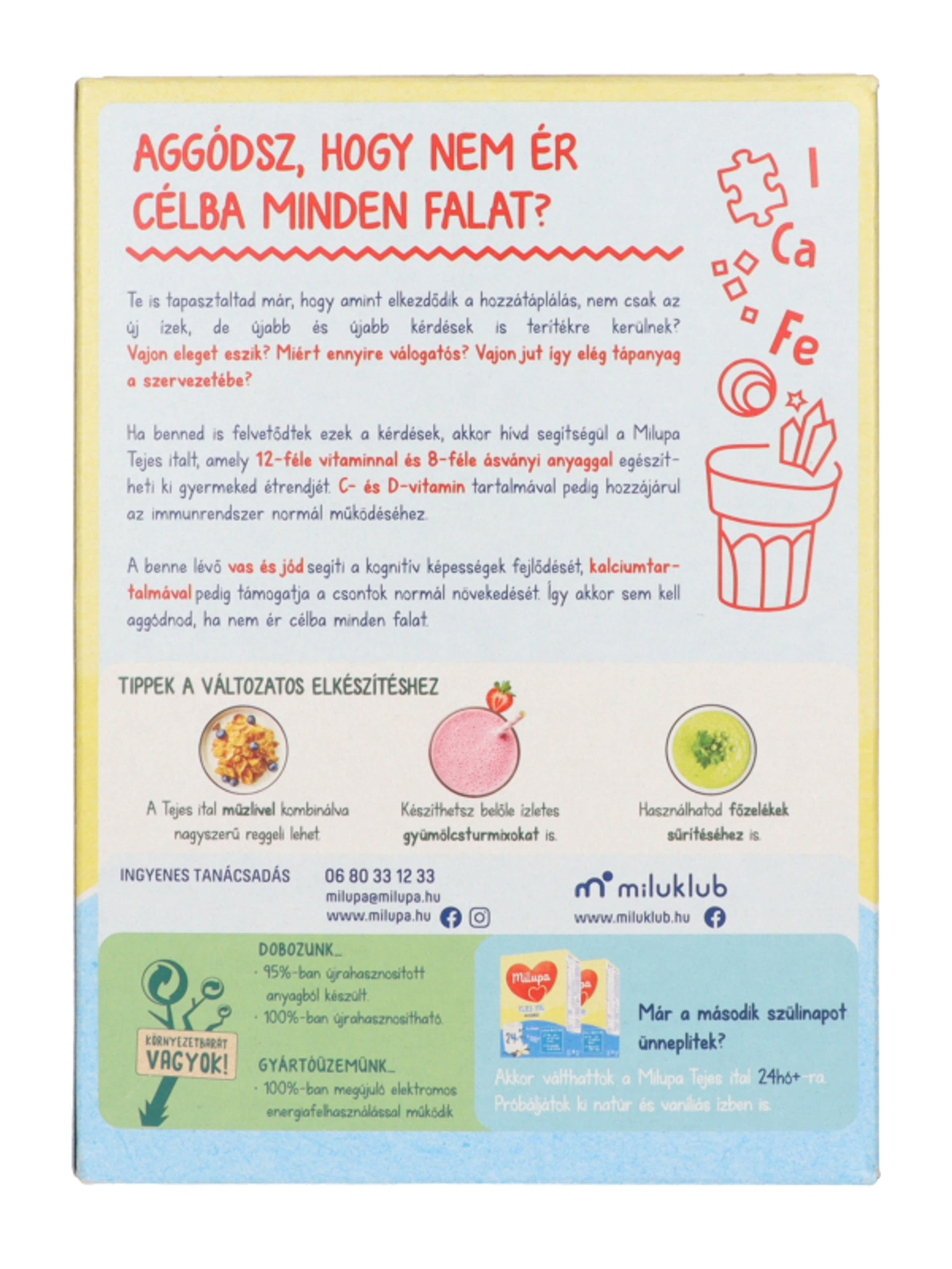 Akkor válthattok a Milupa tejes ital 2 év+-ra. Próbáljátok ki natúr és vaníliás ízben is.