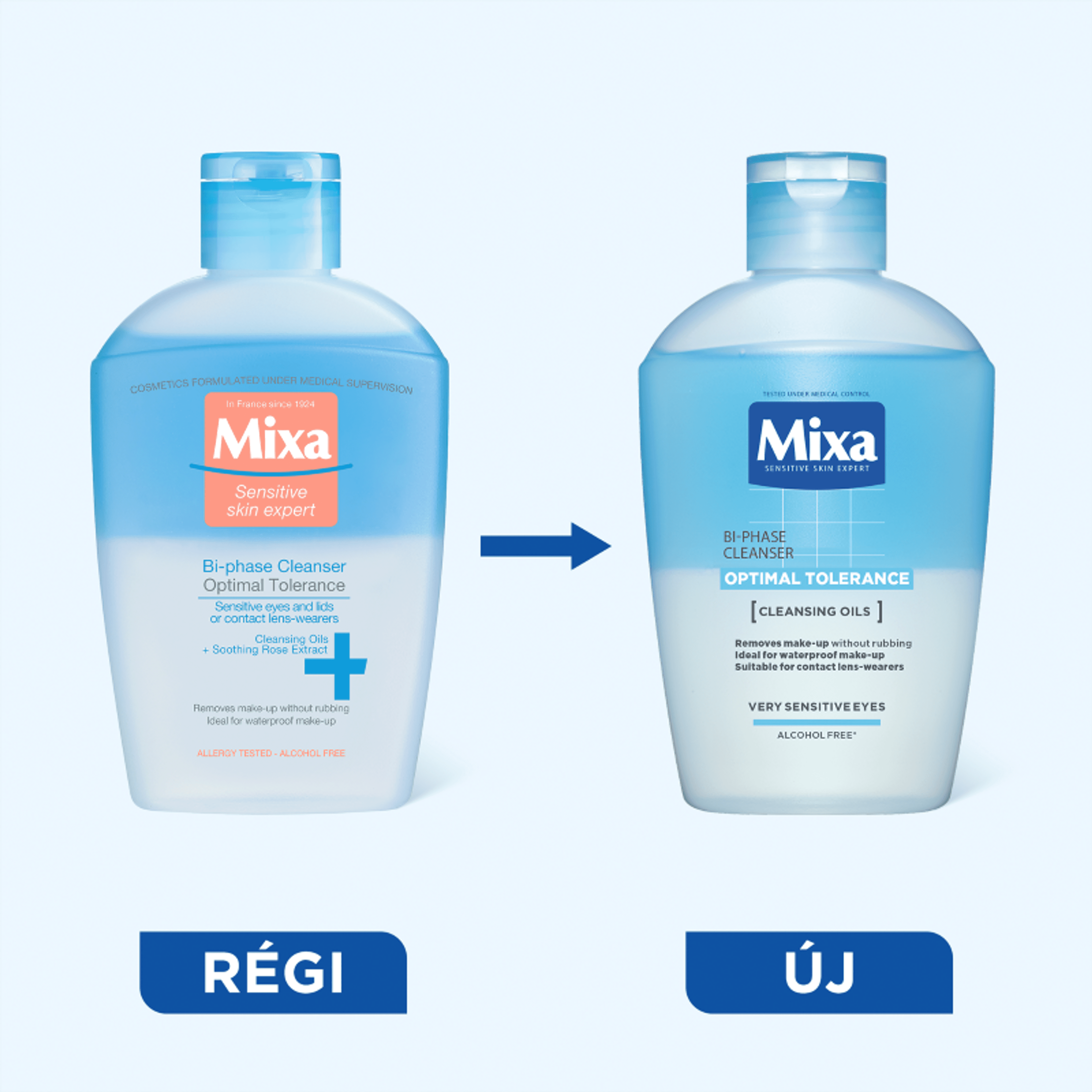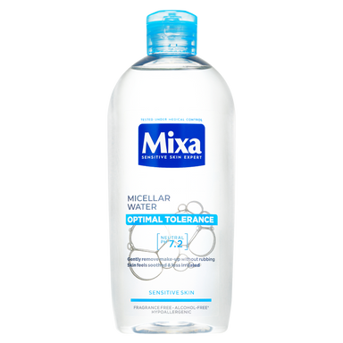 A Mixa kétfázisú szemfestéklemosója 2 látható fázist tartalmaz: olajat és vizet, amelyek feloldják, majd dörzsölés nélkül eltávolítják a sminket. Az érzékeny szem- és ajakbőr nagyszerűen megtisztul, felfrissül és megnyugszik feszülő érzet nélkül.