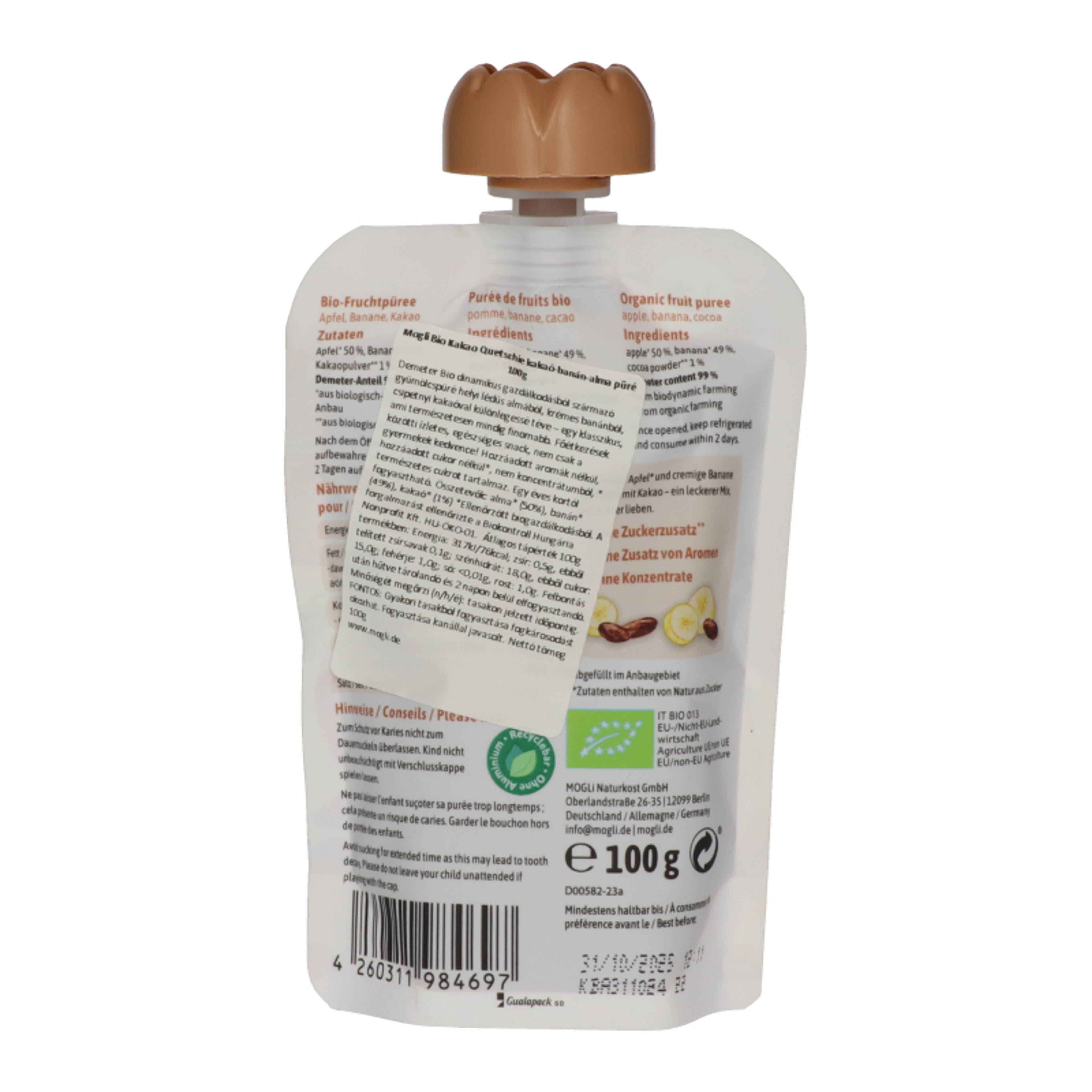 Mogli Bio kakaó-banán-alma gyümölcspüré - 1 db
