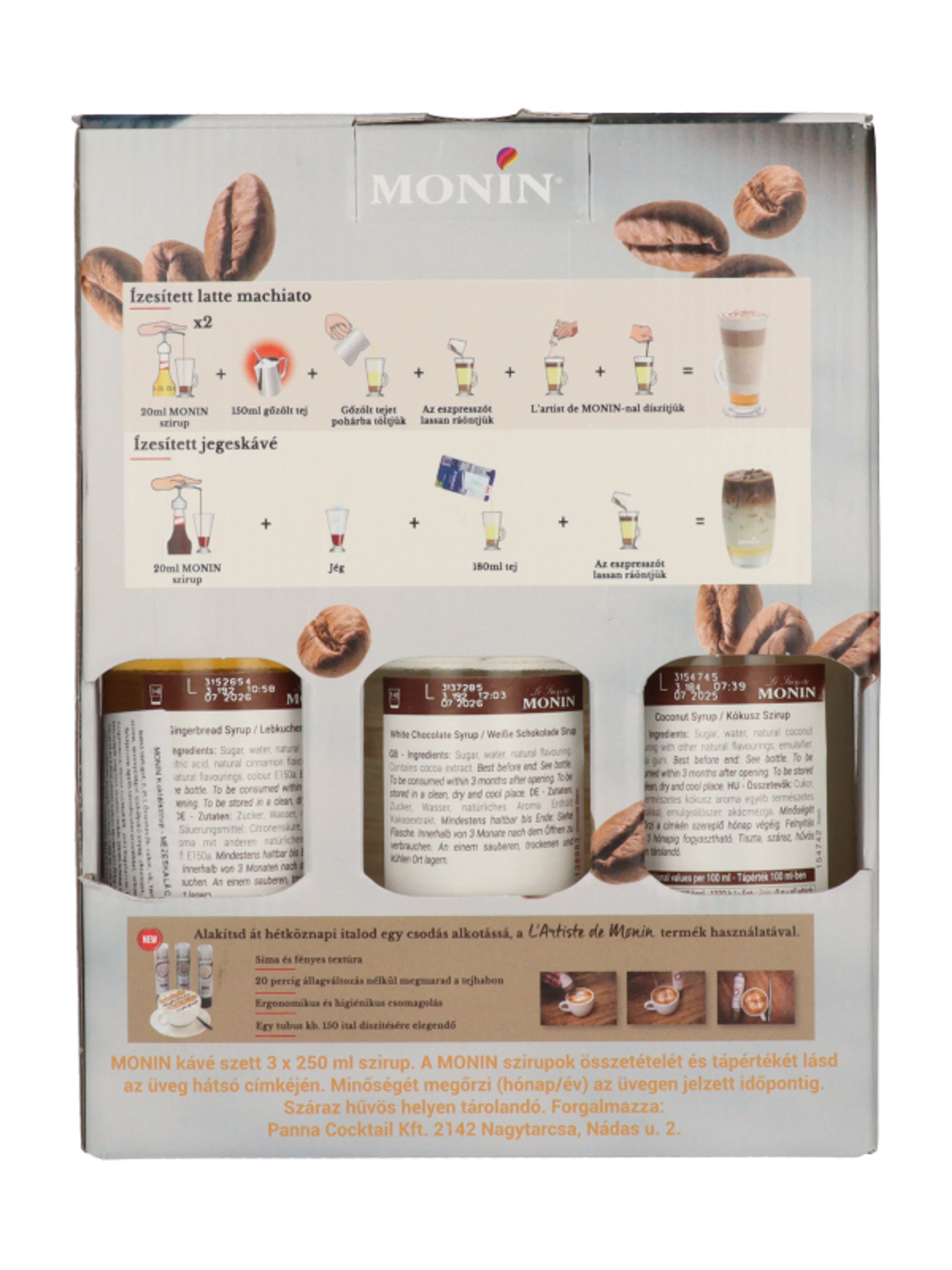 Monin kávészirup szett kókusz, mézeskalács és fehércsoki 3x250 ml - 750 ml