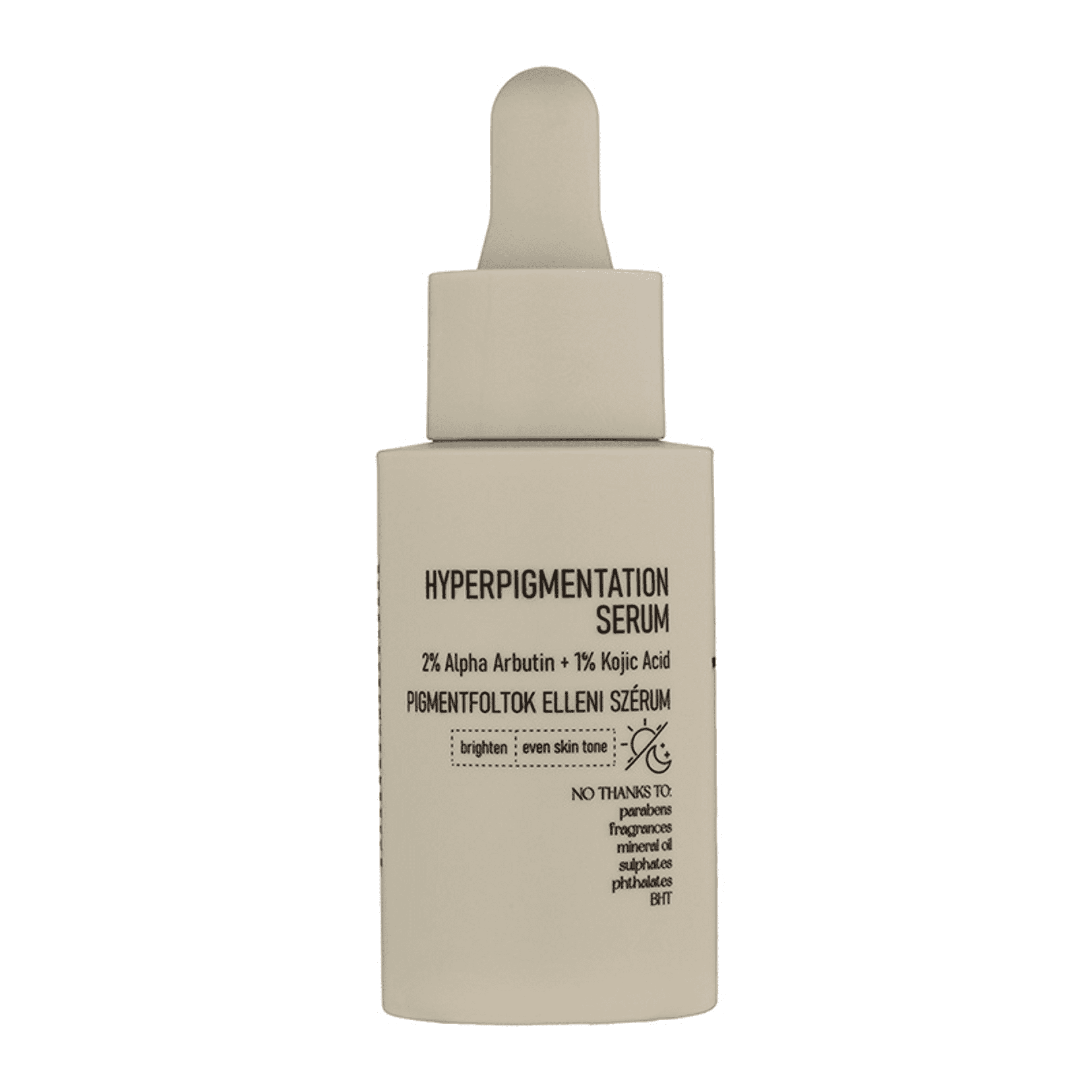 Hatékony összetevőinek, a 2% Alpha Arbutin és a 1% Kojicsav kombinációjának köszönhetően, ez a könnyű tejszerű szérum hatékonyan harcol a bőrön megjelenő sötét foltok ellen. Az Alpha Arbutin segít csökkenteni a bőrben található melanin termelését, így világosabbá téve a foltokat. A Kojicsav pedig kiválóan alkalmas a bőr pigmentációjának kiegyenlítésére és a foltok elhalványítására. Ez a szérum rendszeres használat mellett segíthet egyenletesebbé és ragyogóbbá tenni a bőrt, miközben csökkenti a pigmentációs problémák láthatóságát. Minden bőrtípusra alkalmas. 100%-ban illatmentes, alkohol-mentes, nem-komedogén formula.