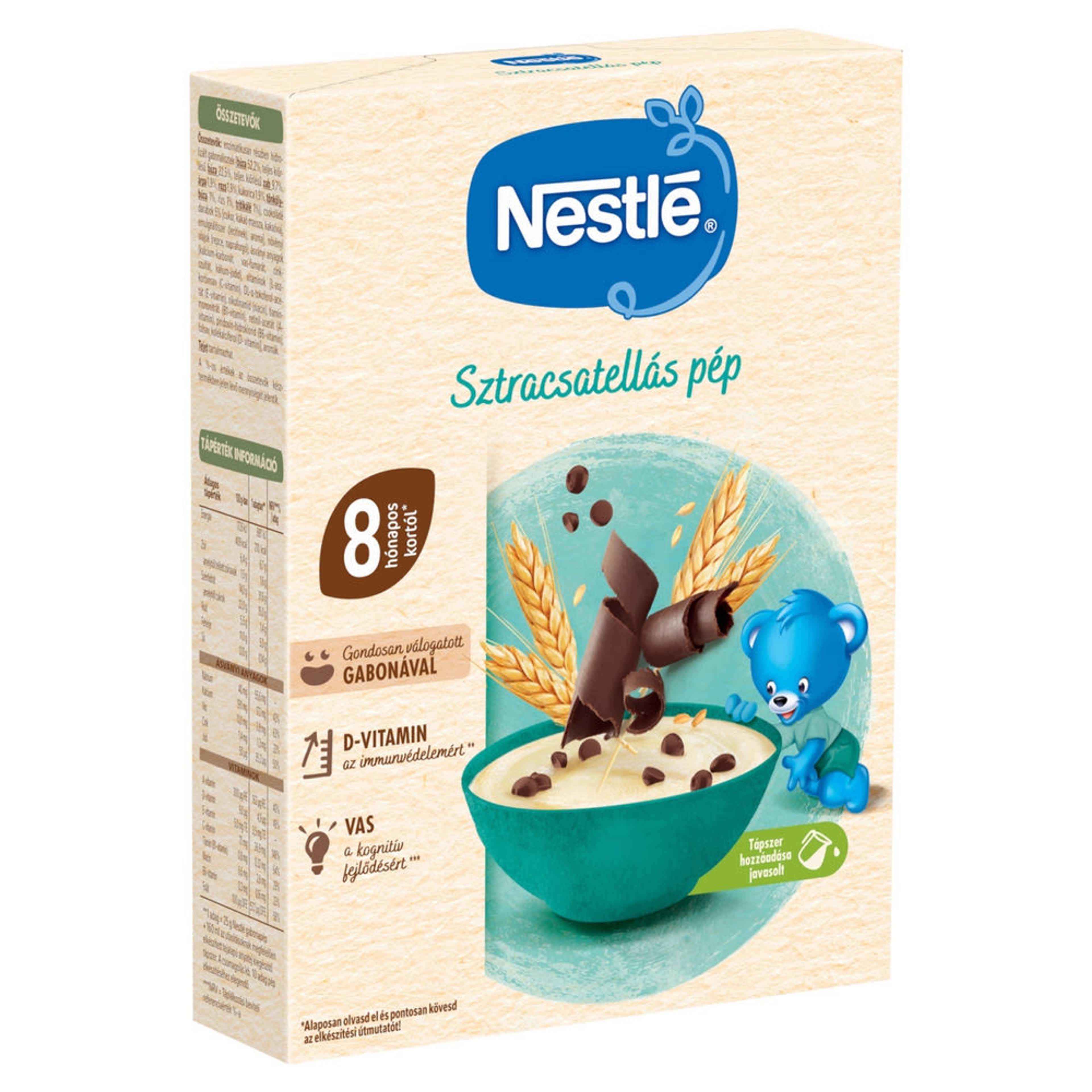 A Nestlé sztracsatellás pép gondosan válogatott gabonákkal és 12 vitaminnal és ásványi anyaggal készül. A Nestlé pépek minden adagja biztosítja babád számára a napi javasolt vasbevitel legalább 50%-át, a D-vitamin pedig hozzájárul az immunrendszer megfelelő működéséhez.