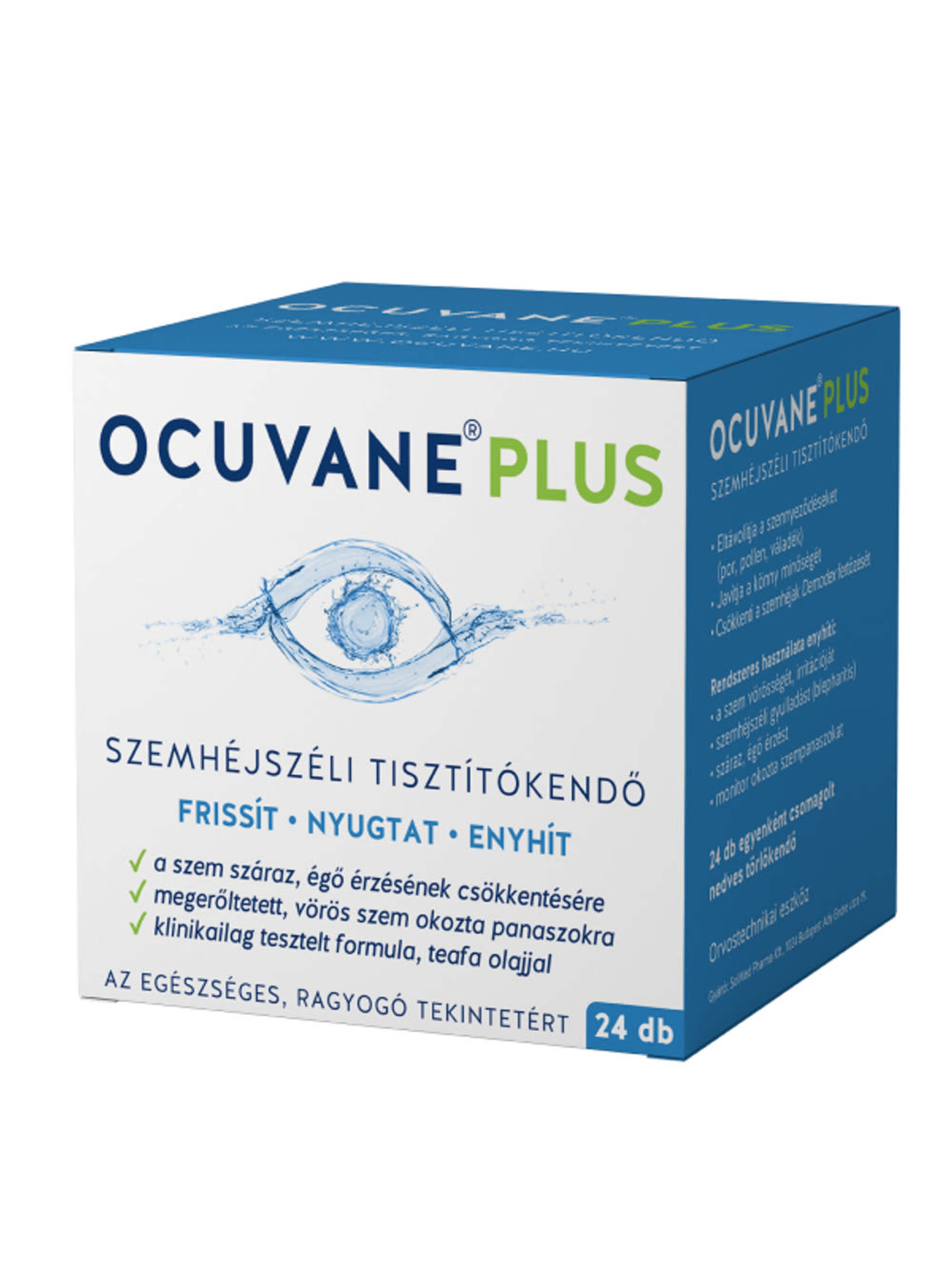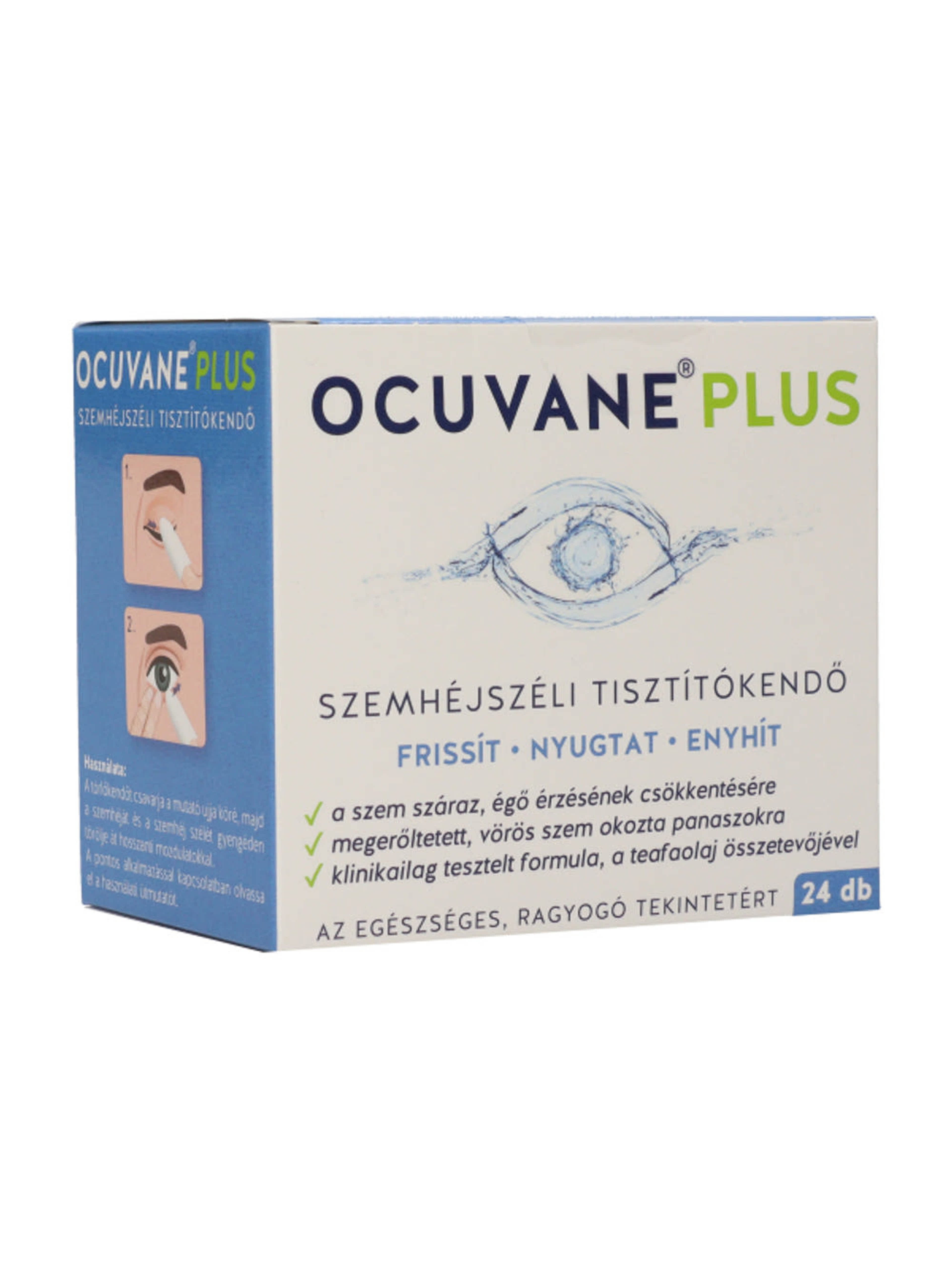 vegye ki az impregnált OCUVANE® PLUS szemhéjszéli tisztítókendőt.