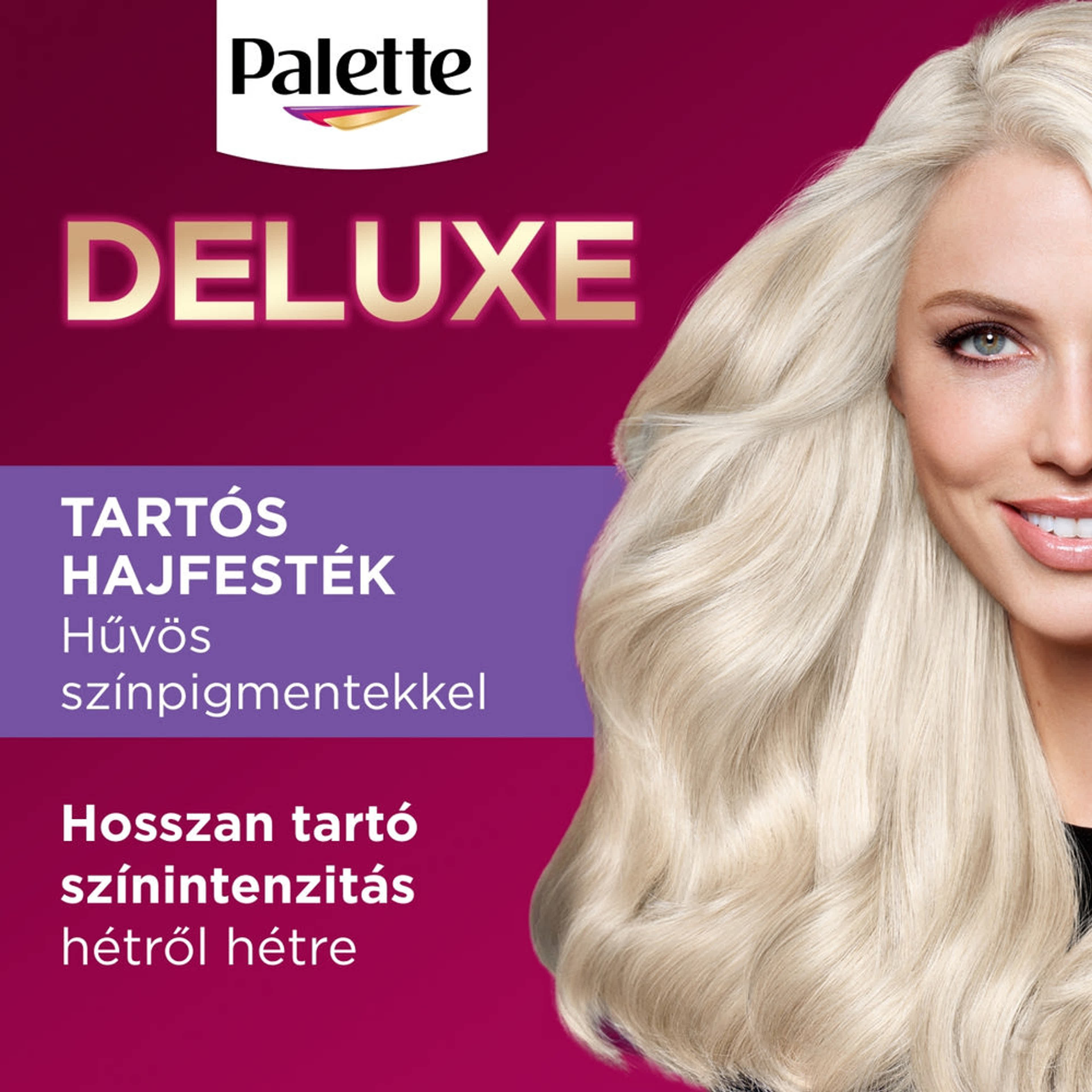 Ünnepeld a színek örömét a Palette Deluxe olajos krémhajfestékkel. Gazdag festékkrém koncentrált hűvös színpigmentekkel a hosszan tartó színeredményért. Festés után a haj mélyen hidratált és selymesen sima. Könnyed kifésülhetőség és ellenálhatatlan csillogás.