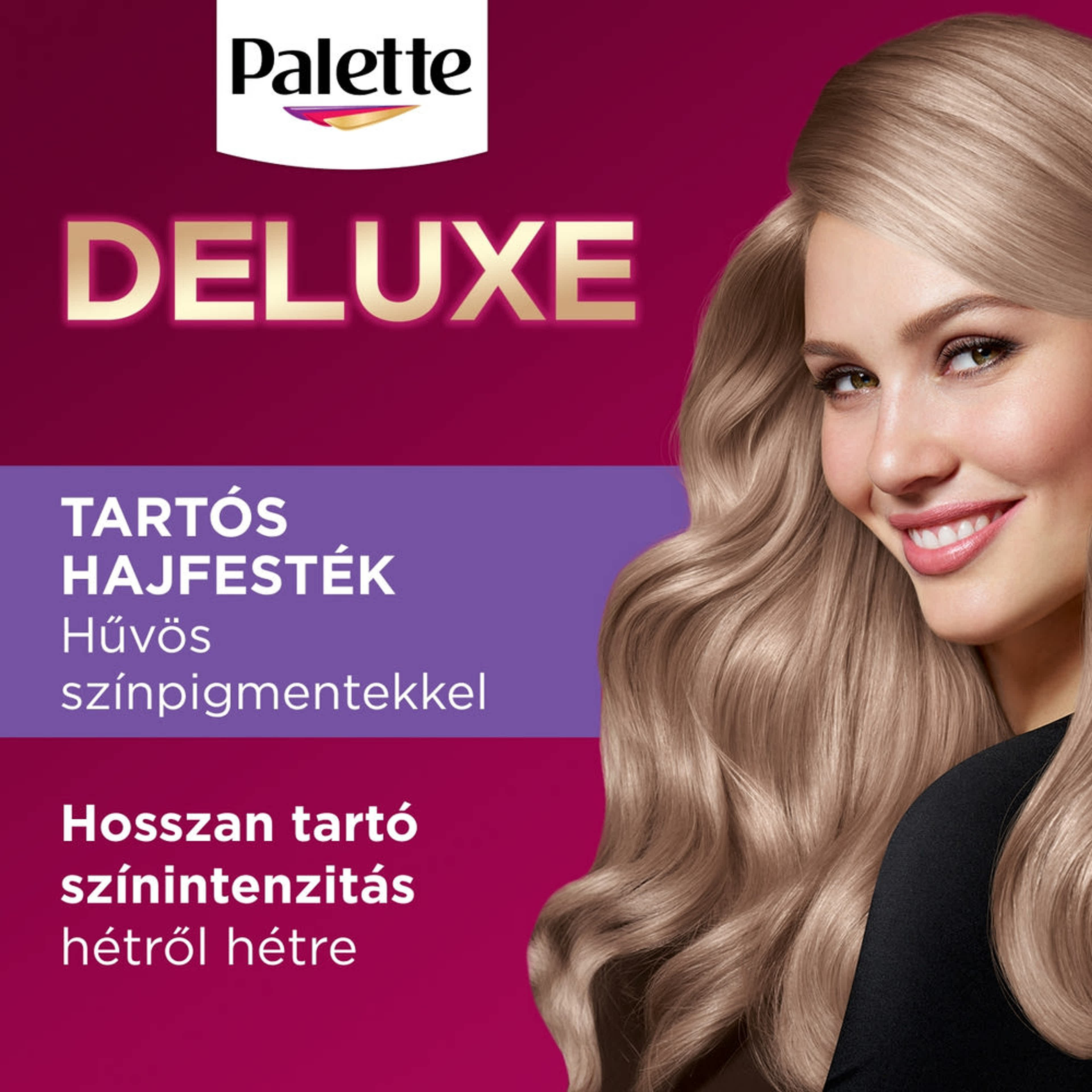 Ünnepeld a színek örömét a Palette Deluxe olajos krémhajfestékkel. Gazdag festékkrém koncentrált hűvös színpigmentekkel a hosszan tartó színeredményért. Festés után a haj mélyen hidratált és selymesen sima. Könnyed kifésülhetőség és ellenálhatatlan csillogás.