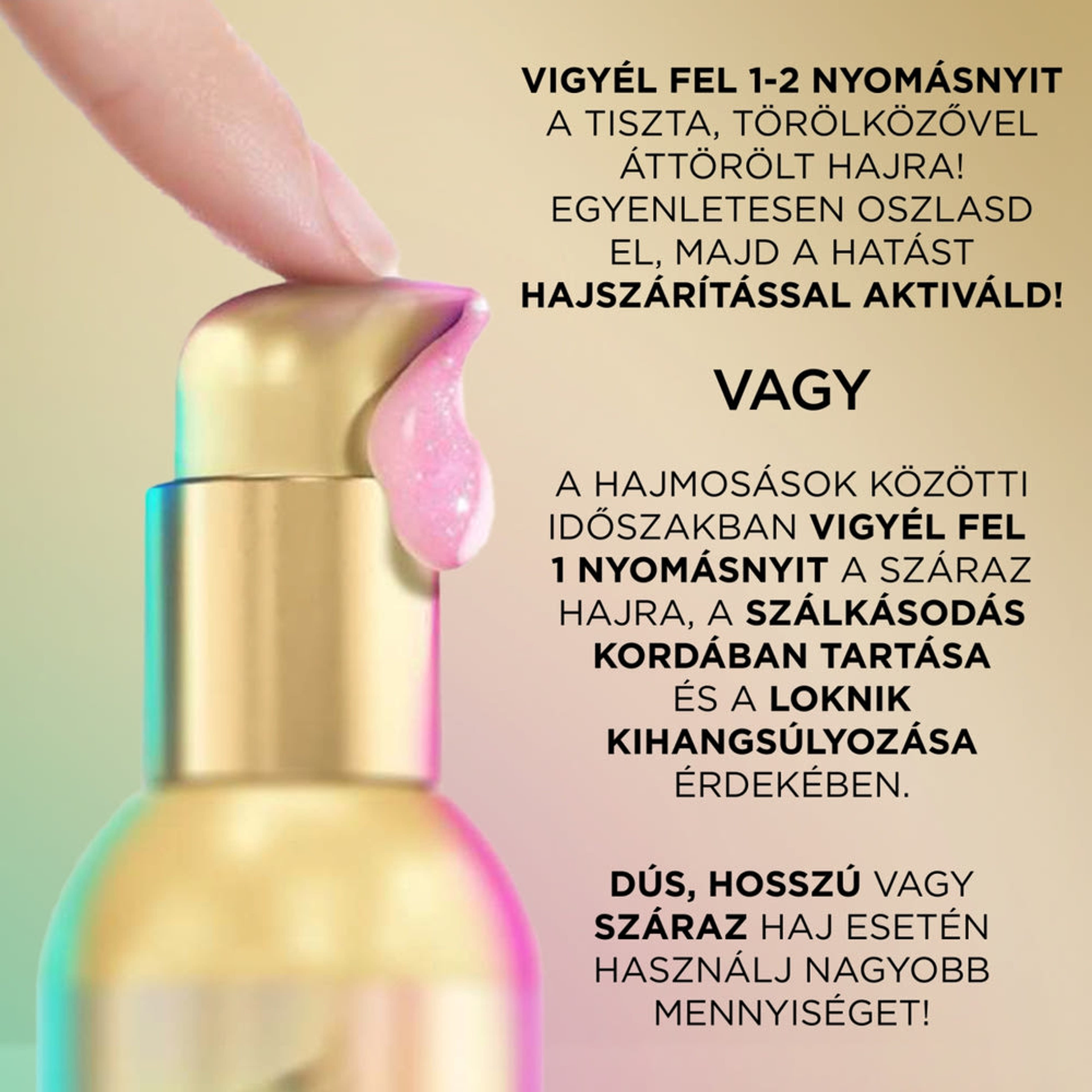 Vigye fel a nedves vagy száraz hajra. A hatást hajszárítással aktiválja.
