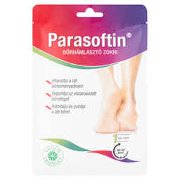 A Parasoftin - Vegán hámlasztó zokni egy innovatív megoldás a talp intenzív és kényelmes ápolására. A talpbőr károsodásának mértékétől függően a Parasoftin összetevői behatolnak a talp bőrébe, felpuhítják az elszarusodott réteget és lehámlasztják a bőrkeményedéseket. Az AHA/BHA savak hatékonyan stimulálják a bőr regenerációját és a bőrmegújító folyamatokat. A komplex kivonatok (növényi kivonatok: passiógyümölcs, citrom, szőlő és ananász, valamint alga és tengeri só vegán kivonatok), az urea, allantoin és a bio pamutolaj hidratálják a száraz bőrt, elősegítik a bőr regenerációját és az új bőr felépítését, ezáltal a bőr bársonyossá és puhává válik. A hámlasztó zokni gondosan kiválasztott összetevői biztosítják a láb intenzív hidratáltságát, bársonyosságát és puhaságát. Az alkalmazást követően a talp bőrének hámlása körülbelül a 4-7. nap közötti időben kezdődhet el. A lehámlott bőrréteget óvatosan távolítsa el, ne tépje be! A teljes regeneráció általában 7-12 nap után következik be.