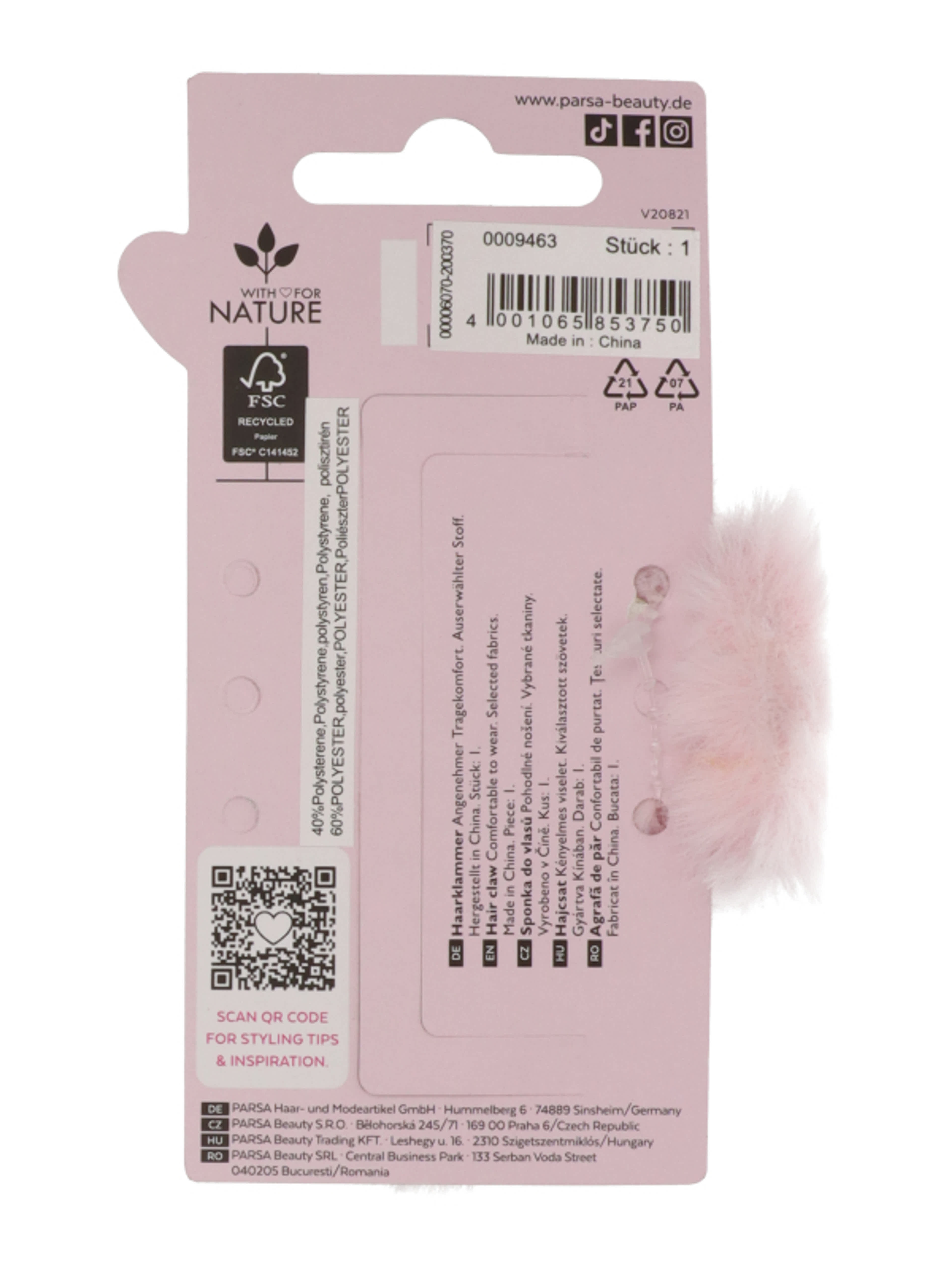 Parsa Beauty hajcsipesz műszörmével /pink - 1 db